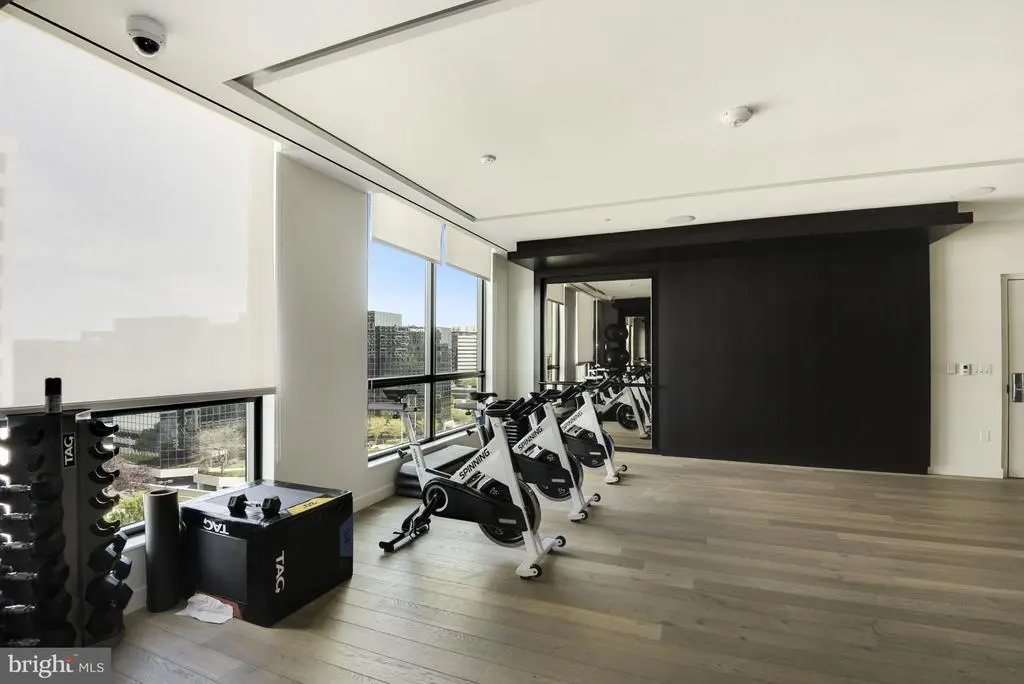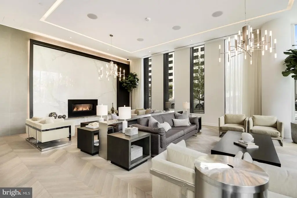 This extraordinary luxury condo in the sky boasts the most spectacular, panoramic distant views in all of McLean! With over 1800 sq ft of living space occupying a corner on the 22nd floor of the Verse Condominium and an additional 230 sq ft of wrap-around terrace, you have an open floor plan with oversized areas for your living, dining, kitchen, and outdoor activities filled with light from the floor-to-ceiling windows that surround you. The condo has two large bedrooms with en-suite baths, a den, and a powder room. The kitchen is beautifully designed for the serious chef with a gas cooktop and top-of-the-line appliances concealed behind custom Italian cabinetry and a built-in wine cooler. A large quartz island features dramatic waterfall edges. The primary bedroom has a large bathroom filled with Calcutta marble, quartz double sink, and a frameless glass shower features that most people only dream of having, plus a fantastic walk-in closet. The second bedroom is also spacious, has a walk-in closet and a very large en-suite bathroom. The den is the perfect home office with a great view! The laundry room is equipped with full-size washer and dryer and shelving. Two indoor parking spaces and a storage space complete this unique property. The Verse offers all the luxury amenities you would expect and so much more. There is 24-hour concierge services, beautiful entry lobby, and multiple public spaces for parties or solitary quiet time. There is also a unique one-acre outdoor Skypark with seating areas, cooking grills, and counter-height refrigerators for outdoor entertainment. In addition to a pool for swimming and lounging in the sun and a first-class fitness facility, the Verse has a pet spa and a guest suite. The Verse Condominium is located in the heart of the Tysons Boro district, close to the Silver-Line Metro stop and filled with restaurants, shops, movie theaters and its own Whole Foods. Luxury living has been redefined in unit 2201 of the Verse!