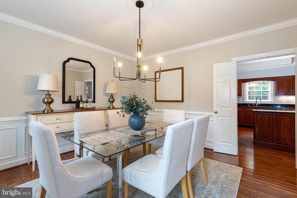 Attic, Bar, Bathroom - Jetted Tub, Soaking Tub, Tub Shower, Bathroom - Walk-In Shower, Built-Ins, Carpet, CeilngFan(s), Chair Railing, Crown Molding, Formal/Separate Dining Room, Pantry, Recessed Lighting, Skylight(s), Upgraded Countertops, Wainscotting, Walk-in Closet(s), Wet Bar/Bar, Shades/Blinds, Wood Floors