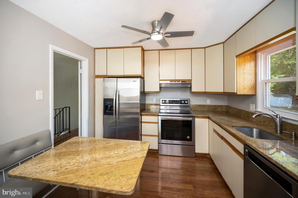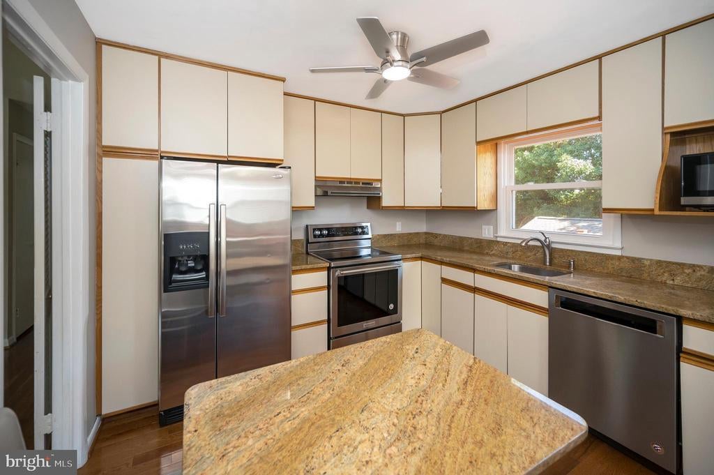 NEW PRICE REDUCTION! Welcome to sought after York Manor in Springfield, VA. This charming 4BR/2BA Split Foyer is located on a gorgeous landscaped corner lot with an underground lawn sprinkler system that backs to Franconia Park and a cul-de-sac that’s not the main entrance to the park. The house has been freshly painted through-out and has an eat-in Kitchen with Stainless Steel Appliances and Granite Counters that opens to a spacious Dining Room that leads out to a nice sized composite Deck for entertaining. The Living room has a cozy wood burning Brick Fireplace with lovely Hardwood floors on the main level and w/w Carpet on the fully finished lower level that includes a Recreational room with a Gas Fireplace, an additional Bedroom, full Bathroom, a Washer/Dryer and a complimentary Freezer that rounds out the large utility room. From the deck and/or the lower level back door, you can go out to enjoy the backyard that offers endless possibilities for outdoor fun and activities which also has a custom built Shed and a closed-in area under the deck that gives you plenty of storage. ROOF & HVAC are just 3yrs old. Security and RING Doorbell Hardware already installed for your option to re-activate. This prime location is a commuters dream with just minutes to the Springfield Metro Station and Amtrak Rail Lines, the newly renovated Springfield Town Center, shopping, restaurants and is in walking distance to schools. There's easy access to I95, I495 and I395 plus an easy commute to Ft. Belvoir, the Pentagon, Old Town-Alexandria and Downtown DC. NO HOA fee and ready to move in!