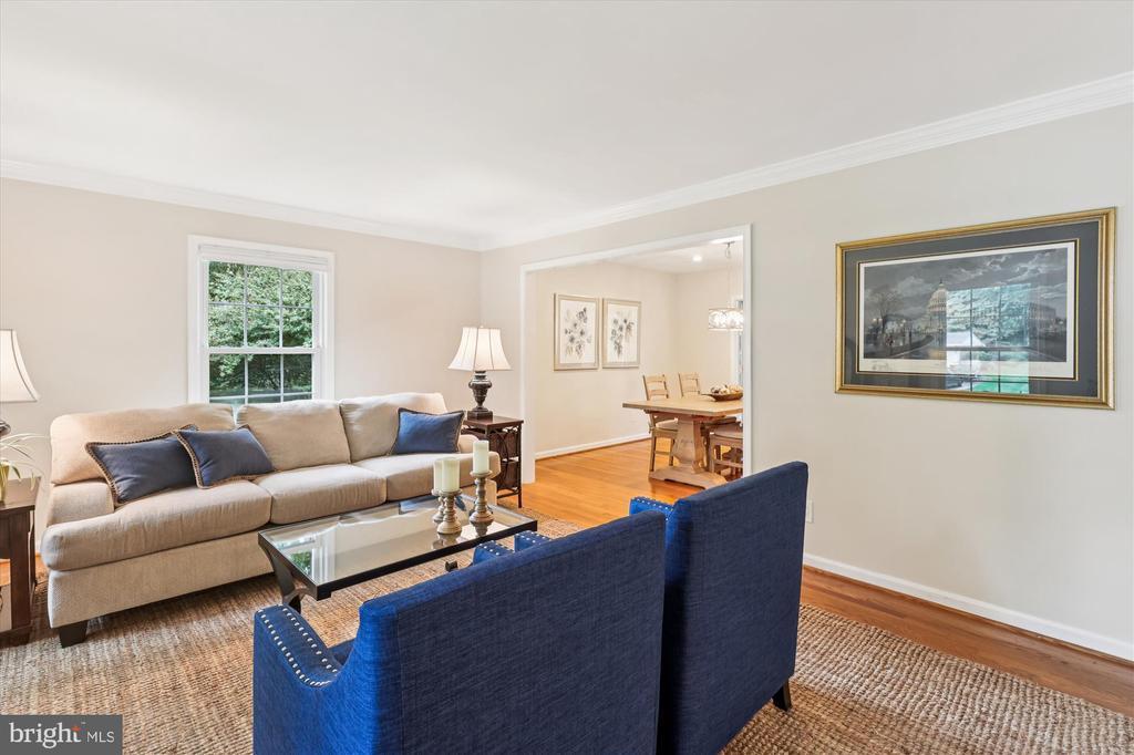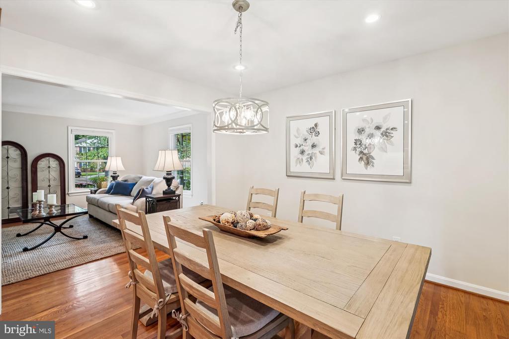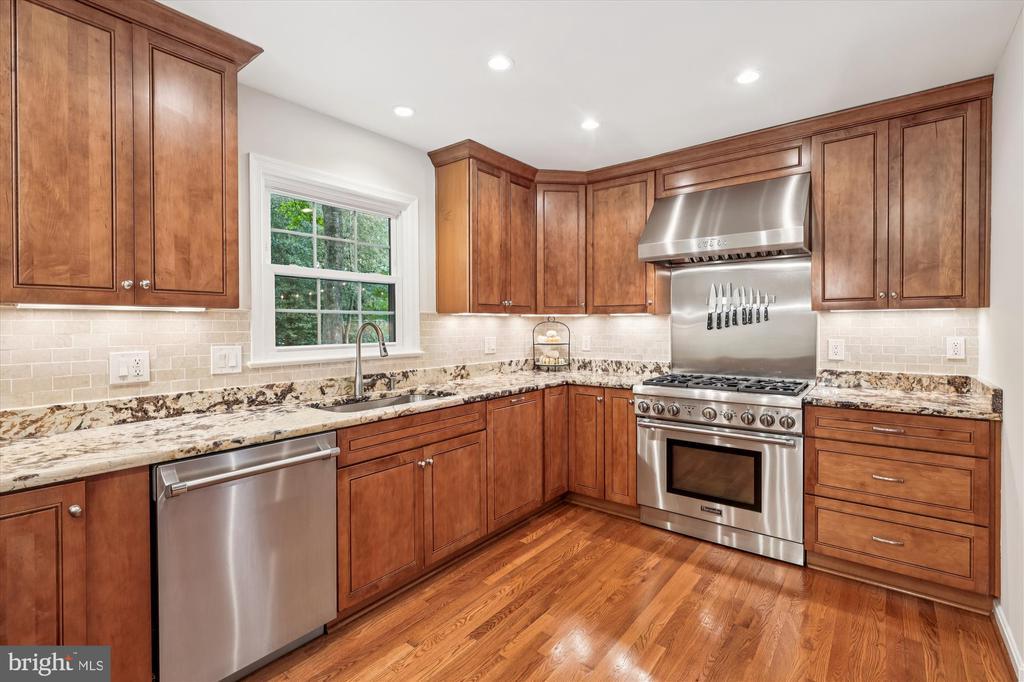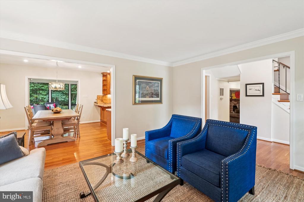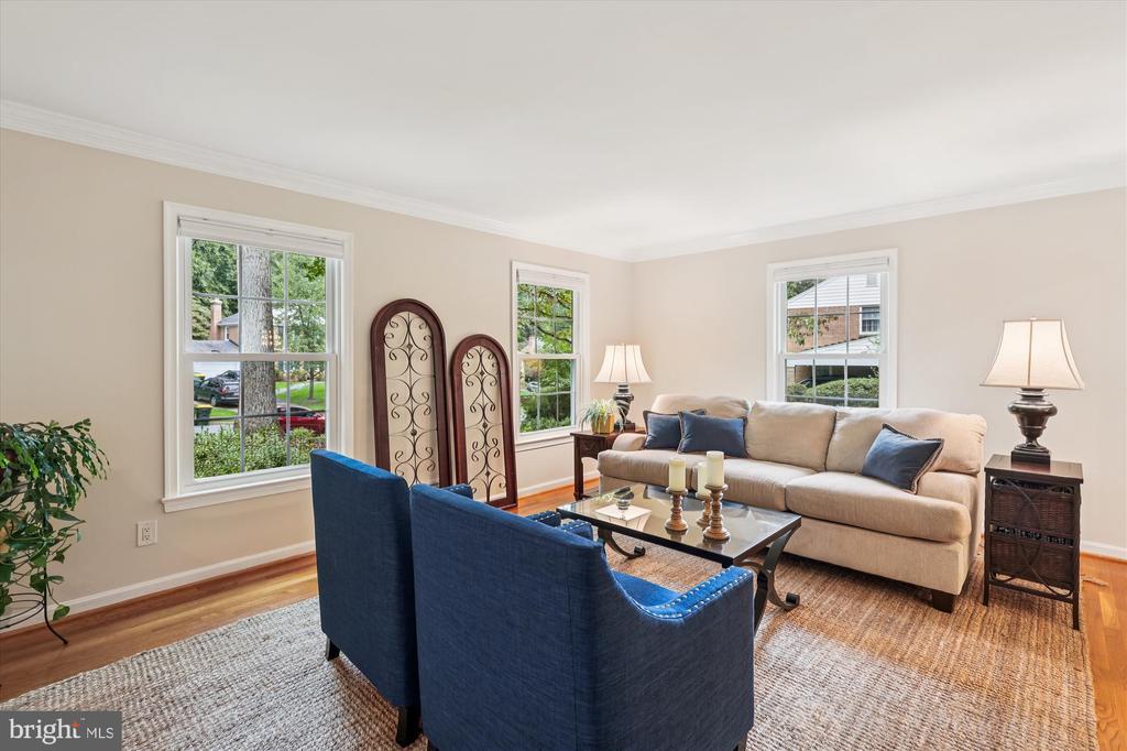 Welcome to one of the most wonderful homes in Chapel Square! The long time owners have meticulously updated and maintained their property. Situated on a quiet cul-de-sac in the heart of the neighborhood, this house has gorgeous curb appeal! Surrounded by old growth trees, the landscaped beds with stacked stone borders create a charming and welcoming first impression! A generous walkway and wide entrance lend an air of graciousness. Upon entering the foyer, visitors are greeted by polished hardwood floors . The living room with its beautiful windows, crown molding and fresh, neutral paint makes you want to curl up with a good book! The renovated kitchen is a dream! This is the hub of the home with rich, wood cabinets, a true chef's 6 burner Thermador range with exhaust fan, an oversized Thermador refrigerator/freezer, loads of granite countertops, including counter seating, a locking beverage refrigerator and a lighted pantry with a glass paned French door. Built-in shelving for your cookbooks and display items adds to the customization of this space! The dining room adjoins the kitchen for a very open feel. From the dining room, wide double doors open fully to the fabulous three season porch! The views from the porch take in the full sweep of the lovely, large and private, fenced back yard. As you exit the porch to the yard, there is a huge, flagstone patio, ringed in party lights. This home was made for entertaining! A second patio further back in the yard feels like a secret garden! A huge shed in the rear of the yard is perfect for all your bikes and gardening equipment. Back inside and off the foyer is the warm and welcoming family room with its antique brick hearth and wood burning fireplace. Doors lead from this room to the rear patio and back yard access. There is an updated powder room with travertine tile and generous closets in the hallway for all kinds of storage needs! Finally on this level is the laundry room. With generous cabinets and a utility sink, this room doubles as a mud room as you enter the house from the garage. The one car garage is pristine! A second refrigerator in the garage conveys with the sale. The lower level of the home is a dream space with new carpet and paint and may be used for a private home office, exercise room or play space. Built-in shelving will make this room work for any of your needs. Additionally, there is a storage room with shelving and a workbench for projects and a utility room with even more storage space. The upper bedroom level is generously laid out with 3 large bedrooms and a primary bedroom with its own bath. Both the primary bath and hall bath have been beautifully renovated with gorgeous tile and finishes. This level has several additional attic storage spaces that are floored with shelving. An attic fan, extra insulation and pull down stairs have been added as well. Solar tubes have been added to both upper level baths and ceiling fans and crown molding have been added to all bedrooms. In addition to the major renovations of the kitchen, bathrooms, lower level, three season porch and patio, the updated systems and foundation items include all windows and interior and exterior doors, the roof, siding, trim and gutters, driveway, HVAC system and hot water heater, electrical panel with a whole house surge protector. This is truly a dream of a home with years of carefree living for the next lucky owners! Chapel Square is a neighborhood with wonderful traditions going back to its founding in the early 1960's. The school pyramid is highly sought after - Woodson/Frost/Wakefield Forest. The fantastic WCRA Swim and Tennis Club provides fabulous activities for the neighborhood! Surrounded by local trails and parks, Chapel Square backs to the Audrey Moore Rec Center. An express bus to the Pentagon is just a block away. Shopping and dining options abound with the Mosaic District a short drive from the neighborhood. Hurry to see this perfect gem of a home today!