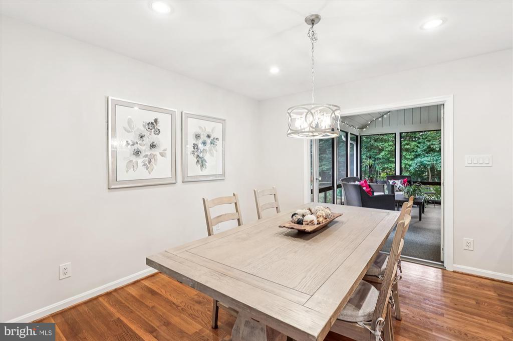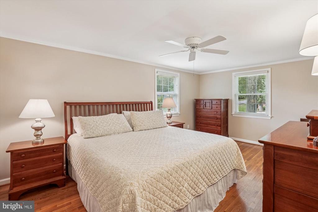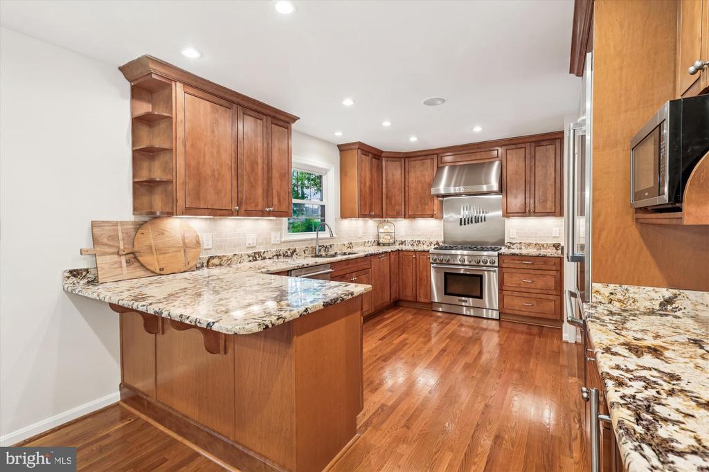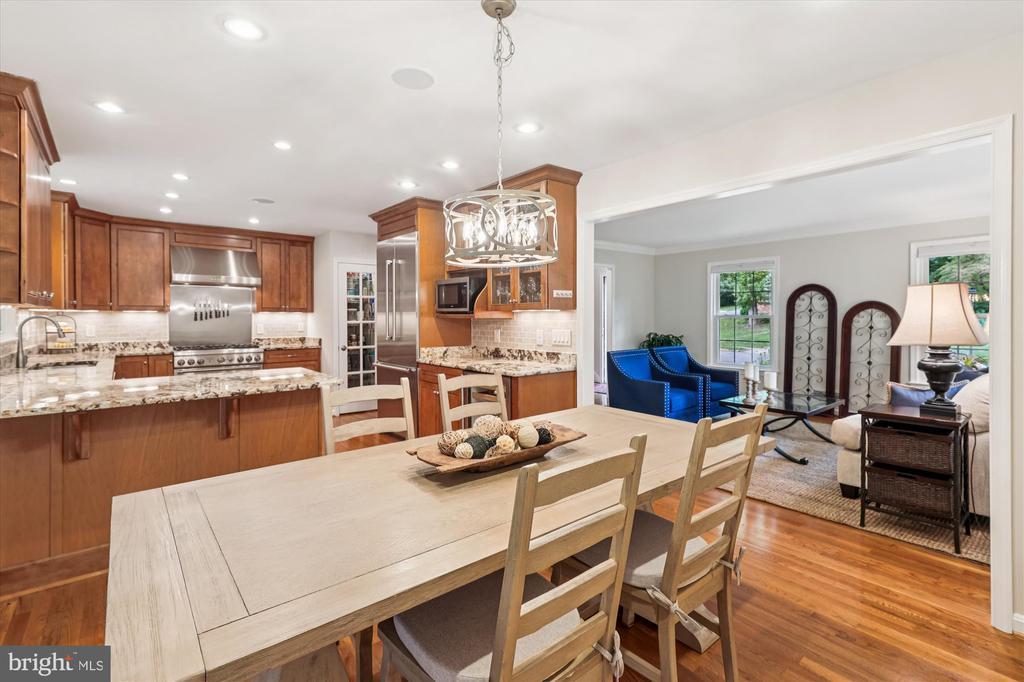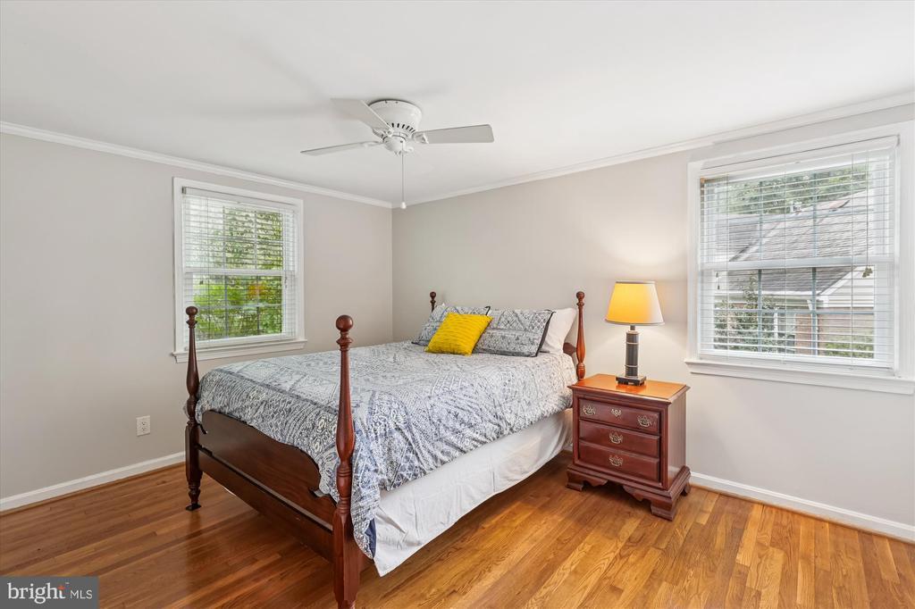 Welcome to one of the most wonderful homes in Chapel Square! The long time owners have meticulously updated and maintained their property. Situated on a quiet cul-de-sac in the heart of the neighborhood, this house has gorgeous curb appeal! Surrounded by old growth trees, the landscaped beds with stacked stone borders create a charming and welcoming first impression! A generous walkway and wide entrance lend an air of graciousness. Upon entering the foyer, visitors are greeted by polished hardwood floors . The living room with its beautiful windows, crown molding and fresh, neutral paint makes you want to curl up with a good book! The renovated kitchen is a dream! This is the hub of the home with rich, wood cabinets, a true chef's 6 burner Thermador range with exhaust fan, an oversized Thermador refrigerator/freezer, loads of granite countertops, including counter seating, a locking beverage refrigerator and a lighted pantry with a glass paned French door. Built-in shelving for your cookbooks and display items adds to the customization of this space! The dining room adjoins the kitchen for a very open feel. From the dining room, wide double doors open fully to the fabulous three season porch! The views from the porch take in the full sweep of the lovely, large and private, fenced back yard. As you exit the porch to the yard, there is a huge, flagstone patio, ringed in party lights. This home was made for entertaining! A second patio further back in the yard feels like a secret garden! A huge shed in the rear of the yard is perfect for all your bikes and gardening equipment. Back inside and off the foyer is the warm and welcoming family room with its antique brick hearth and wood burning fireplace. Doors lead from this room to the rear patio and back yard access. There is an updated powder room with travertine tile and generous closets in the hallway for all kinds of storage needs! Finally on this level is the laundry room. With generous cabinets and a utility sink, this room doubles as a mud room as you enter the house from the garage. The one car garage is pristine! A second refrigerator in the garage conveys with the sale. The lower level of the home is a dream space with new carpet and paint and may be used for a private home office, exercise room or play space. Built-in shelving will make this room work for any of your needs. Additionally, there is a storage room with shelving and a workbench for projects and a utility room with even more storage space. The upper bedroom level is generously laid out with 3 large bedrooms and a primary bedroom with its own bath. Both the primary bath and hall bath have been beautifully renovated with gorgeous tile and finishes. This level has several additional attic storage spaces that are floored with shelving. An attic fan, extra insulation and pull down stairs have been added as well. Solar tubes have been added to both upper level baths and ceiling fans and crown molding have been added to all bedrooms. In addition to the major renovations of the kitchen, bathrooms, lower level, three season porch and patio, the updated systems and foundation items include all windows and interior and exterior doors, the roof, siding, trim and gutters, driveway, HVAC system and hot water heater, electrical panel with a whole house surge protector. This is truly a dream of a home with years of carefree living for the next lucky owners! Chapel Square is a neighborhood with wonderful traditions going back to its founding in the early 1960's. The school pyramid is highly sought after - Woodson/Frost/Wakefield Forest. The fantastic WCRA Swim and Tennis Club provides fabulous activities for the neighborhood! Surrounded by local trails and parks, Chapel Square backs to the Audrey Moore Rec Center. An express bus to the Pentagon is just a block away. Shopping and dining options abound with the Mosaic District a short drive from the neighborhood. Hurry to see this perfect gem of a home today!