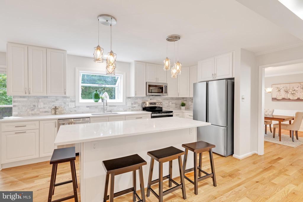 In the sought-after Triple Ridge community, 8106 Oak Hollow Ct offers over 4,000 sq. ft. of upgraded living with NO HOA. A brick walkway and perennial landscaping welcomes you to a freshly painted home filled with natural light and hardwood floors. The BRAND NEW (2025) kitchen features quartz counters, custom cabinetry with pull-outs, an expanded footprint with island seating, all new appliances and an entertainment counter that is great for gathering with family and friends. The family room offers a nice warm space with built-ins, a white fireplace, and direct access to the expansive screened-in porch overlooking the tranquil fenced backyard with 36’ patio. Upstairs provides 5 spacious bedrooms with hardwoods and new ceiling fans, while the finished lower level includes a large rec room, full bath, storage, and a flex space that could easily be reimagined as a kitchenette or private suite, making it ideal for multi-generational living. Additional highlights include a private office with built-ins, functional laundry with storage and folding counter, shed, and covered storage beneath the deck. Major updates: Kitchen Remodel (2025) New appliances (2025) roof (2024), water heater (2020), and well-maintained HVAC (2010). This home is move-in ready, blending comfort, character, and value.