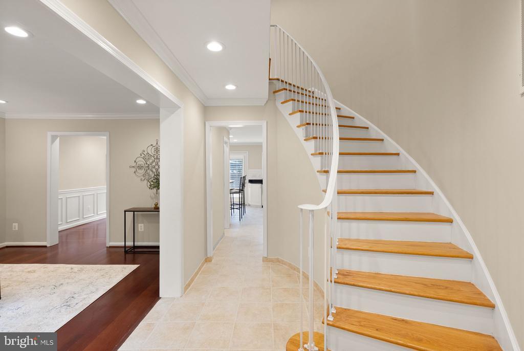 Built-Ins, Crown Molding, Curved Staircase, Master Bath(s), Recessed Lighting, Upgraded Countertops, Wainscotting, Wood Floors, CeilngFan(s)
