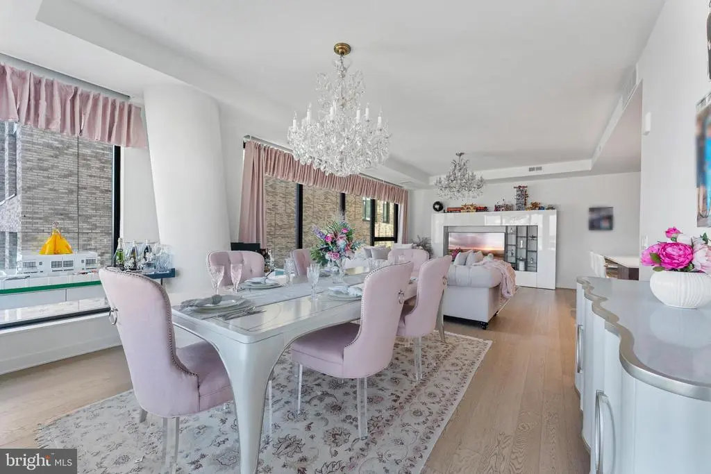 Welcome to Your Luxury Retreat at The Verse This stunning 10th-floor corner residence at The Verse offers the perfect blend of elegance, comfort, and convenience in the heart of Tysons’ vibrant Boro district. With 2 spacious bedrooms, a versatile den/home office (or 3rd bedroom), and 2.5 baths, this home boasts soaring 9-foot ceilings, expansive walls of glass, and a thoughtfully designed open floor plan that fills every room with natural light. From the moment you step into the welcoming foyer—redesigned as a gallery wall with a custom coat closet—you’ll feel the attention to detail. The den has been transformed with built-in desks and full-height cabinetry, perfect for work, study, or additional storage. The open living and dining area flows seamlessly to a 32-foot covered balcony, where privacy and sweeping city views create a serene backdrop for entertaining. The chef’s kitchen, designed by renowned Canadian firm Cecconi Simone, features sleek custom cabinetry, integrated appliances, and elegant white finishes that complement the chic décor. A custom entertainment center, sparkling crystal chandeliers (option to convey), elevate the modern luxury lifestyle. The primary suite offers spa-like comfort with double walk-in closets, a ceiling fan, and an upgraded bath with water closet and dual vanities. Additional upgrades include custom closets, lighting, and even a built-in laundry system. Designed for ease of living, the home is also fully wheelchair accessible. At The Verse, luxury extends beyond your residence. Enjoy 24-hour concierge service, an automated package system, a pet spa, a state-of-the-art fitness center with yoga room, a guest suite, pool, and a massive Sky Park—perfect for relaxing, grilling out, or entertaining. Situated in a walkable, amenity-rich neighborhood, you’re just steps from Whole Foods, North Italia, Bluestone Lane Café, ShowPlace ICON movie theater, and the Greensboro Metro station, making city access effortless. Whether you’re seeking a private retreat, an entertainer’s dream, or a work-from-home haven, this residence combines it all—elegance, functionality, and an unbeatable Tysons location.