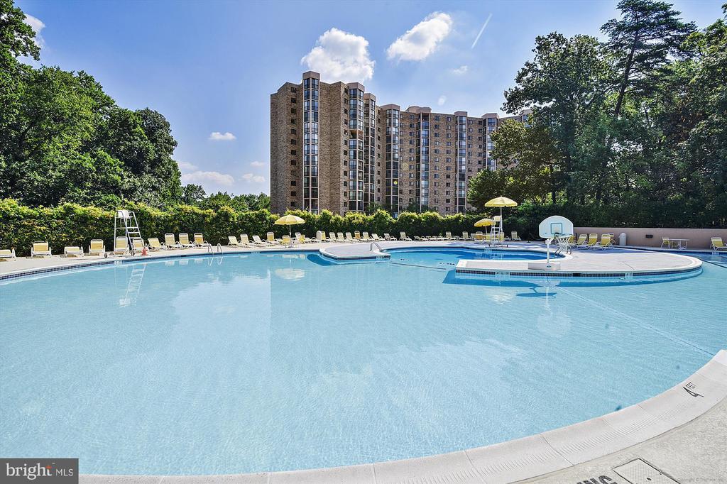 Montebello offers more than just your next home, it offers a compelling package of resort-quality amenities, lush surroundings, and unmatched convenience for those seeking a high-value, lifestyle-focused home. Resort-style features include indoor and outdoor pools, fitness center, bowling alley, tennis/pickleball courts, walking trails, hobby rooms, on-site cafe/bar, convenience store, hair salon, dog park, even an EV charging station—everything under one roof, securely tucked away in a lush 35-acre gated community. This unit comes with ONE ASSIGNED GARAGE PARKING SPACE (#61) and EXTRA STORAGE (located on B-2). Nestled within the prestigious Montebello community, this 2-bed / 2-bath high-rise condominium offers a luxurious lifestyle defined by comfort and convenience. Spanning 1,195 square feet, this contemporary unit is designed with an open floor plan that seamlessly integrates the living and dining areas, creating an inviting space perfect for both relaxation and entertaining. Step inside to discover an updated galley kitchen, featuring stamped tile backsplash, a wall oven, cooktop, dishwasher, and room for cafe table for casual meals or wall space for adding a kitchen pantry cabinet, if you're seeking additional storage. Natural light pours in through sliding windows, and newer sliding glass doors that enclose the sunroom, allowing you to choose between a fresh breeze, or being protected from the elements. A spacious primary bedroom features a walk-in closet, linen closet, & wall-closet, providing abundant storage. The second bedroom, with built-ins, easily converts to a dedicated office / den, when not needed as a bedroom. With in-unit washer and dryer, daily chores become a breeze, allowing you to focus on enjoying your new home. Both bedrooms are ensuite. Montebello is not just a residence; it's a lifestyle. The community offers an array of amenities that cater to your every need. Enjoy leisurely afternoons at the indoor and outdoor pools, or challenge friends to a game on the tennis courts or basketball courts. For those who appreciate a bit of fun, the on-site bowling alley and party room provide perfect venues for gatherings. The convenience store and exercise room add to the ease of living in this gated community, where security is paramount with 24-hour surveillance and a secure entrance. Located in a serene suburban setting, this property is just a stone's throw from public transportation options, including Huntington Metro station and bus stops, making commuting effortless. With one dedicated parking garage space and additional surface parking available, parking is a breeze. Experience the perfect blend of luxury and comfort in this Montebello condo, where every detail has been thoughtfully curated to create a welcoming home. Embrace a lifestyle that offers both tranquility and vibrant community living, all within a beautifully maintained environment. This is more than just a home; it's a sanctuary waiting for you to make it your own.