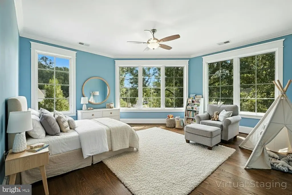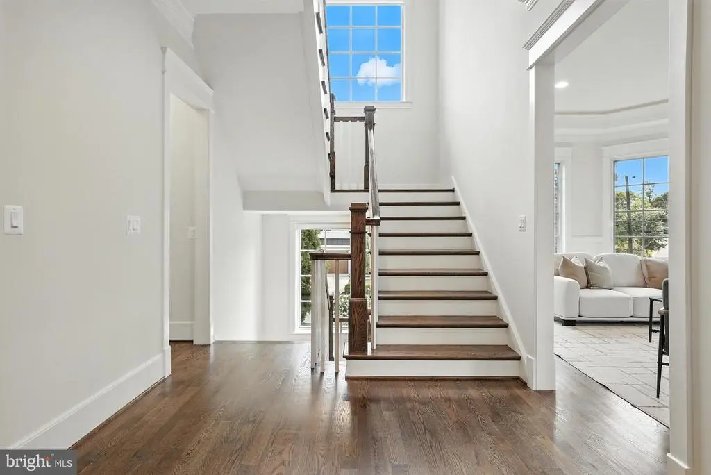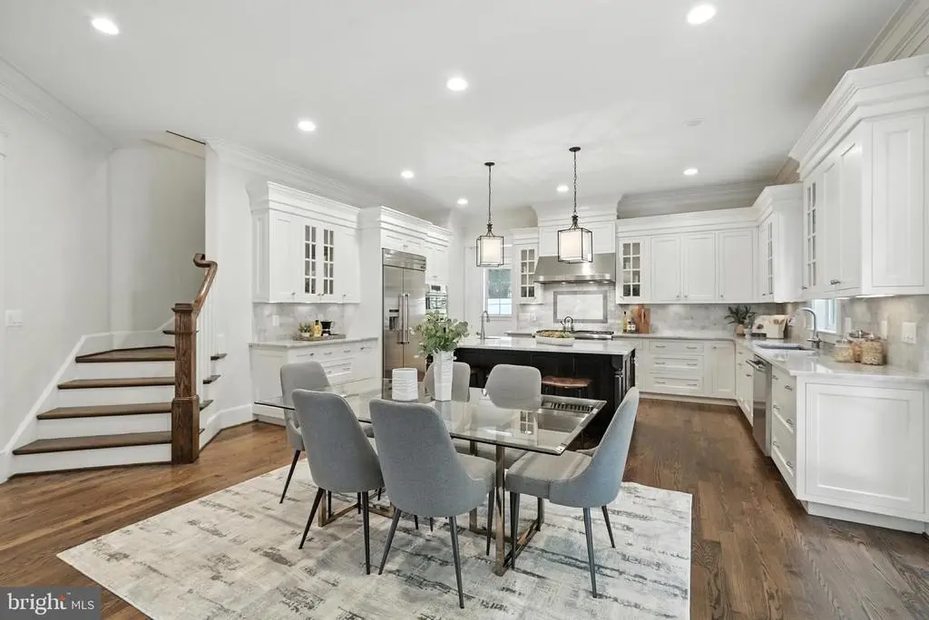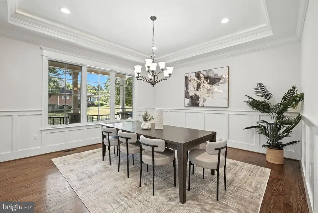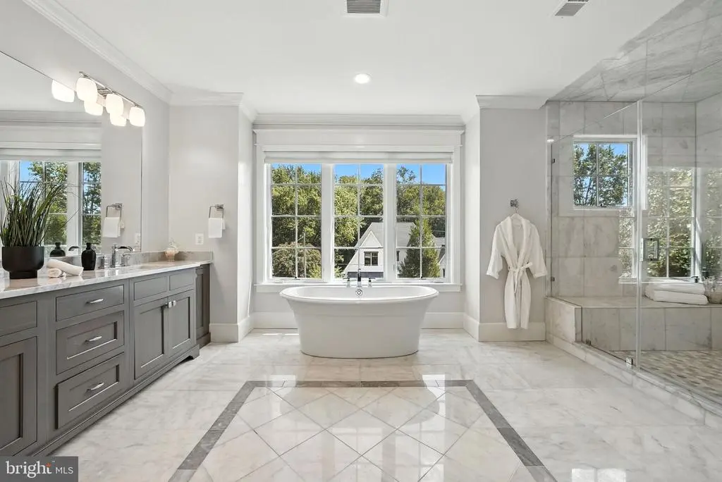 Built in 2015 and meticulously maintained, this home lives like new construction - without the growing pains! Experience the perfect blend of elegance, modern design, and functional luxury in this 6-bedroom Contemporary Craftsman, perfectly situated on a beautifully landscaped ¼+-acre lot in McLean’s highly sought-after Birchwood neighborhood. Step onto a private, elevated front porch and enter a spacious foyer flanked by formal living and dining rooms with graceful wainscotting. The gourmet eat-in kitchen is a chef’s dream with Thermador & Bosch appliances, a 6-burner + griddle range, marble countertops, and a large breakfast bar with prep sink. French doors open to a tranquil flagstone patio, ideal for al fresco dining. The kitchen flows seamlessly to a coffered-ceiling family room with gas fireplace, while a tucked-away main-level bedroom doubles as a private office or guest suite. Functionality meets style with two staircases, two powder rooms, and the ultimate mudroom drop zone featuring ample cubbies, walk-in pantry, and additional storage. Upstairs, the primary suite impresses with a tray ceiling, private sitting room with gas fireplace and wet bar, two walk-in closets, and a spa-like bath with dual-sink marble vanity, soaking tub, and oversized double shower. Three ensuite bedrooms, each with walk-in closets, along with upper-level laundry and two linen closets, complete the level. The fully finished walk-out lower level offers a 6th ensuite bedroom, kitchenette and bar area, expansive rec room with gas fireplace, theater room, and bonus space ideal for a home gym. With soaring ceilings, oversized windows, mature landscaping, irrigation system, and fully fenced backyard, 6434 Noble blends modern convenience with refined luxury for effortless living and entertaining.