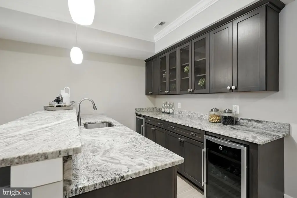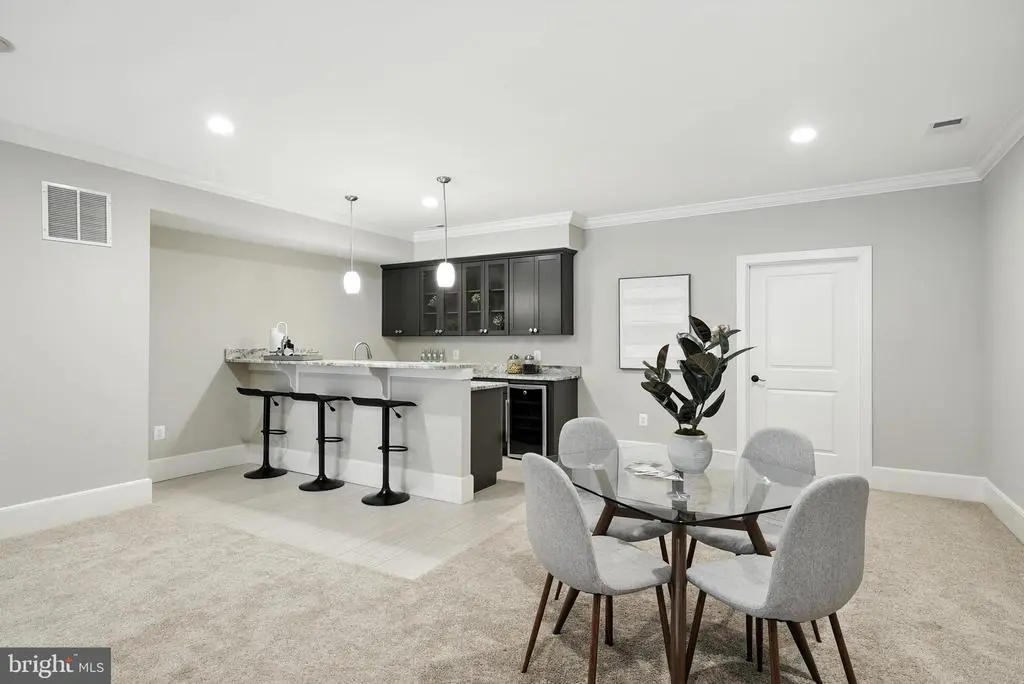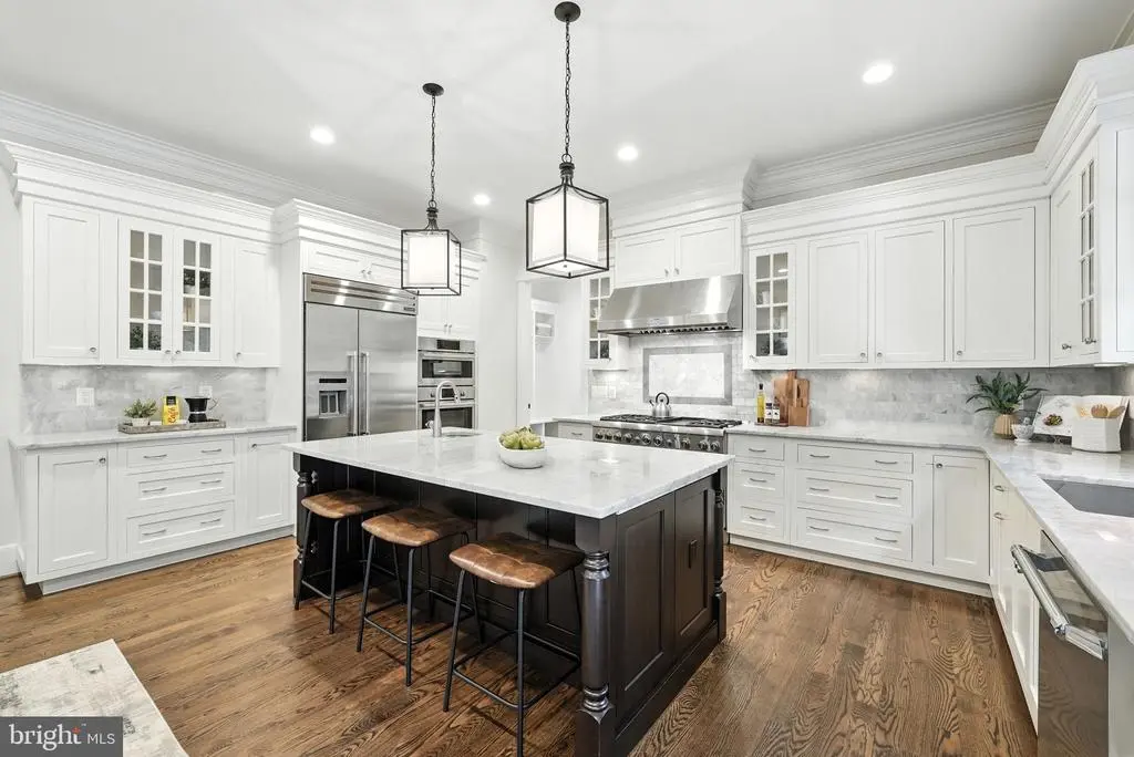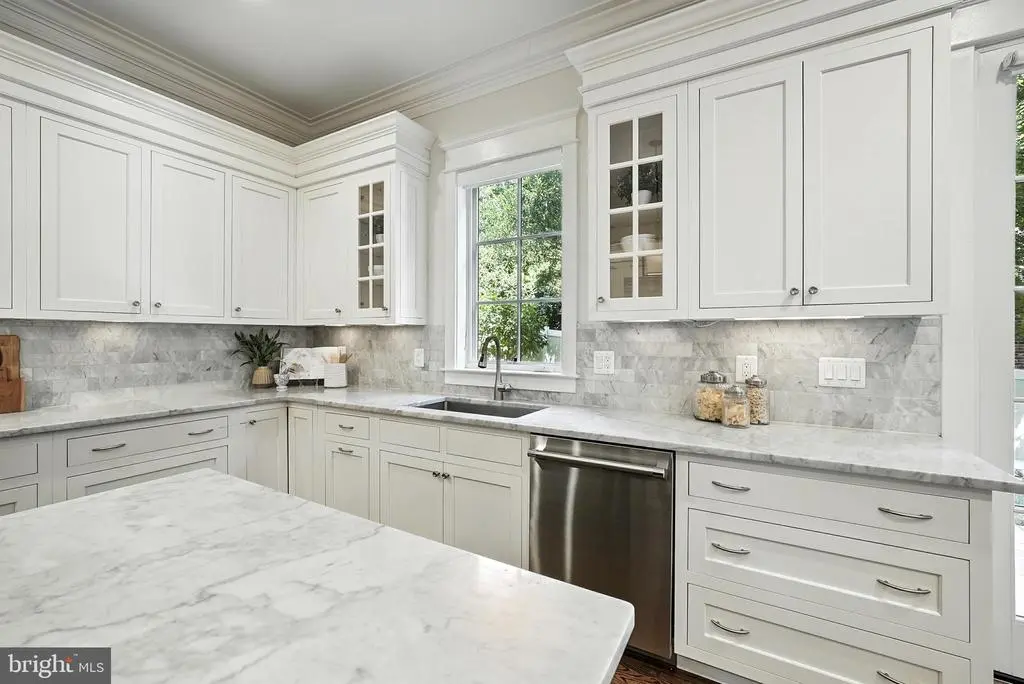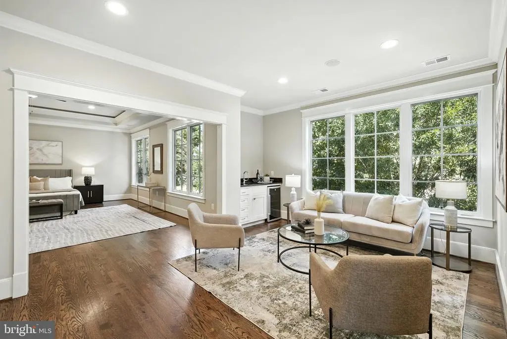 Built in 2015 and meticulously maintained, this home lives like new construction - without the growing pains! Experience the perfect blend of elegance, modern design, and functional luxury in this 6-bedroom Contemporary Craftsman, perfectly situated on a beautifully landscaped ¼+-acre lot in McLean’s highly sought-after Birchwood neighborhood. Step onto a private, elevated front porch and enter a spacious foyer flanked by formal living and dining rooms with graceful wainscotting. The gourmet eat-in kitchen is a chef’s dream with Thermador & Bosch appliances, a 6-burner + griddle range, marble countertops, and a large breakfast bar with prep sink. French doors open to a tranquil flagstone patio, ideal for al fresco dining. The kitchen flows seamlessly to a coffered-ceiling family room with gas fireplace, while a tucked-away main-level bedroom doubles as a private office or guest suite. Functionality meets style with two staircases, two powder rooms, and the ultimate mudroom drop zone featuring ample cubbies, walk-in pantry, and additional storage. Upstairs, the primary suite impresses with a tray ceiling, private sitting room with gas fireplace and wet bar, two walk-in closets, and a spa-like bath with dual-sink marble vanity, soaking tub, and oversized double shower. Three ensuite bedrooms, each with walk-in closets, along with upper-level laundry and two linen closets, complete the level. The fully finished walk-out lower level offers a 6th ensuite bedroom, kitchenette and bar area, expansive rec room with gas fireplace, theater room, and bonus space ideal for a home gym. With soaring ceilings, oversized windows, mature landscaping, irrigation system, and fully fenced backyard, 6434 Noble blends modern convenience with refined luxury for effortless living and entertaining.