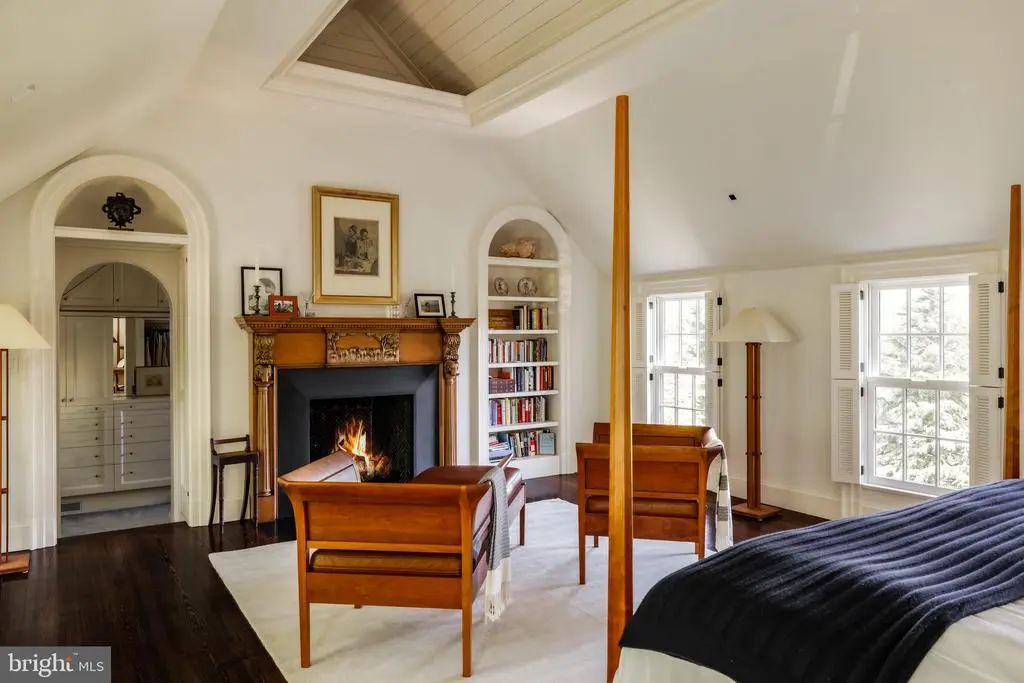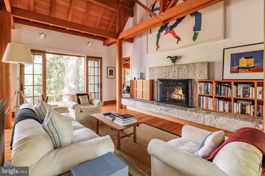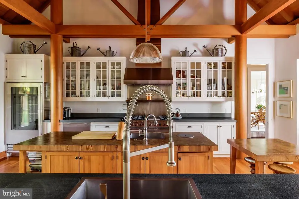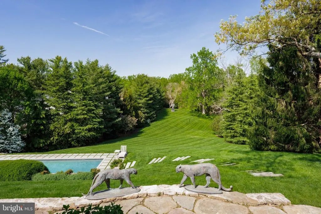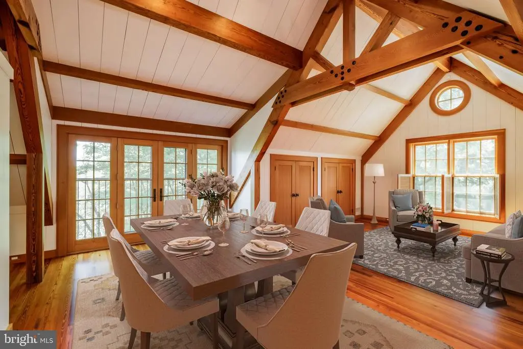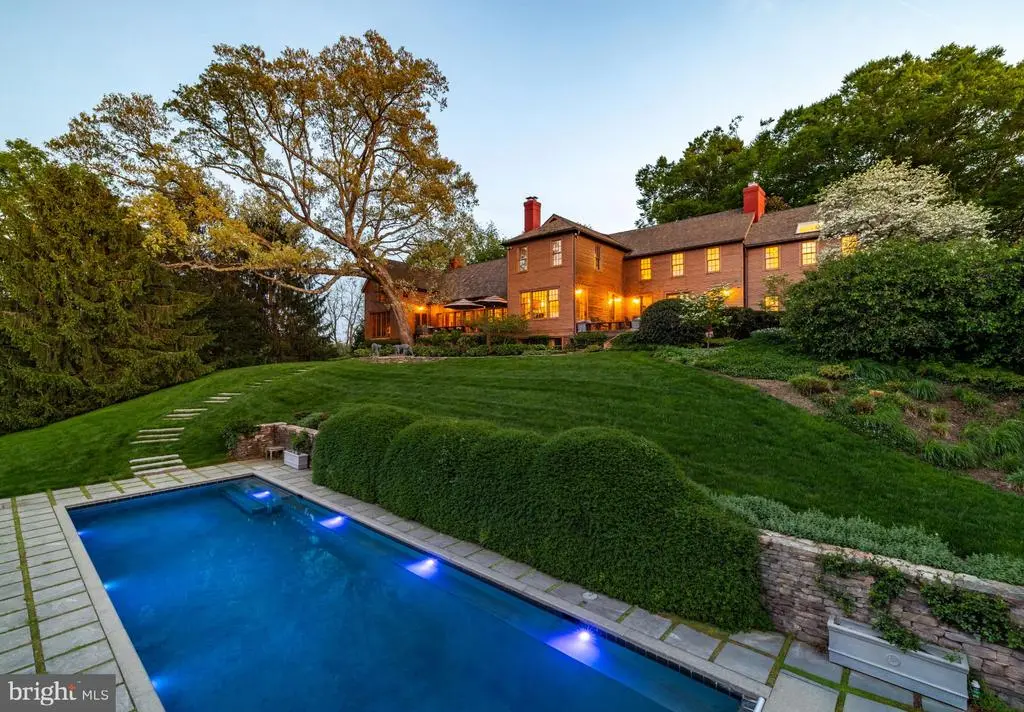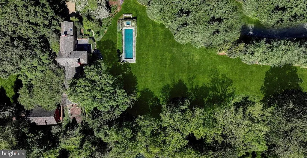 Uniquely nestled on 2.47 manicured, parklike acres in the heart of the prestigious Langley Oaks neighborhood, 6400 Georgetown Pike is an estate of rare distinction. A pair of motorized gates offers discreet entry to the grounds, where a winding pebble driveway orchestrates a graceful approach to the main residence. Originally constructed prior to the Civil War, the home is clad in historic wooden clapboard and evokes the ambiance of a grand mountain lodge, a feeling heightened by the surrounding rolling hills and towering pines, yet juxtaposed by its remarkably central and accessible setting. Inside, a central foyer bisects the main level, artfully dividing formal and informal living areas. The interiors are a masterful fusion of bold historic detail and stylish modernity, recently reimagined in collaboration with renowned designer Thomas Pheasant. Gleaming, dark-stained hardwood floors flow seamlessly throughout. The formal living room is generously scaled for elegant entertaining, opening through triple sets of doors to a flagstone patio. An exquisite fireplace with hand-carved wooden mantle anchors the far wall, while a step down reveals the dignified library, encased in built-ins and aglow with soft architectural lighting. Opposite, the informal wing inspires awe with its soaring 30-foot vaulted ceiling, fully exposing original wooden beams and columns. At its heart lies the chef’s kitchen, complete with a custom wooden prep island and a comprehensive suite of Sub-Zero and Wolf appliances. A large, tiered island bridges the transition into the family room, where a roaring wood-burning fireplace with substantial stone surround commands attention. French doors open to the rear deck, while a wall of windows frames the front lawn. Upstairs, the primary suite occupies its own private wing; a sanctuary of serenity and scale. A vestibule opens to the main sleeping quarters beneath a vaulted shiplap ceiling. The adjoining dressing room impresses with its own vaulted ceiling, extensive built-ins, and rolling library ladder. The luxurious primary bath features dark floor tiles mirroring the dual vanities, which flank a handmade French soaking tub by Naudie. A skylit walk-in shower and separate water closet complete the suite. Three additional bedrooms each with stylish ensuite baths are also located on the upper level. The lower level offers a large recreation room, bonus space with wet bar, dedicated laundry area, and a professional-grade home office. A detached guest house stands adjacent to the main residence, doubling as an oversized garage. The upper level is a private suite, ideal for a home office or fitness studio. Below, a fully self-sufficient residence includes a premium kitchen with JennAir and Sub-Zero appliances, guest bedroom, and full bath. State-of-the-art systems span the estate: Lutron lighting, an advanced LG security system with video surveillance, Geothermal HVAC, central vacuum, and a whole-house generator ensure seamless comfort. The guest house enjoys independent HVAC and security systems. Outdoors, the estate's whimsical grounds blend tiered gardens, mature trees, and extensive hardscaping into a tranquil, curated landscape. Landscape lighting and full irrigation ensure beauty day and night. A large lap pool with automatic cover and adjacent spa enjoy verdant views of the surrounding acreage. Located within the Beltway and just moments from acclaimed Langley High School, the estate is mere minutes from McLean’s town center and the George Washington Parkway into DC. Completely irreplaceable, 6400 Georgetown Pike stands as the apex of luxury country living in one of the Capital Region’s most coveted enclaves.
