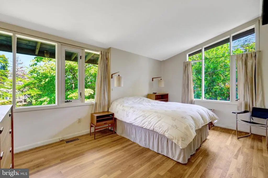 Welcome to this stunning Mid-Century Modern retreat tucked away on a quiet cul-de-sac in a lush, tree-lined neighborhood surrounded by parkland. Ideally located with convenient access to downtown Washington D.C., Tysons Corner, and both Dulles and National Airports. Commuting is a breeze via car, Metro, or bus. This architecturally distinctive 5-bedroom, 3-bath home showcases the timeless appeal of Mid-Century Modern design. Vaulted ceilings, expansive walls of glass, and abundant natural light create a seamless connection between indoor and outdoor living. Rich natural materials, including beautiful oak hardwood floors combined with teak furniture add warmth and character throughout the home. Perfect for both relaxing and entertaining, this residence offers a rare combination of privacy, style, and convenience. Located in a sought-after neighborhood that feeds into highly regarded schools,. This is a rare opportunity to own a piece of classic modernism in an unbeatable location. The town of Mclean has a wonderful Community Center with hundreds of classes that anyone can participate in and a theater for plays and concerts, as well as a newly built library with a large children's playground area next door. If you enjoy walking and don't want to be dependent on a car you will find that the location of this home is perfect for you because so many shops, coffee houses, restaurants, medical offices are within a 5-10 minute walk from this home.
