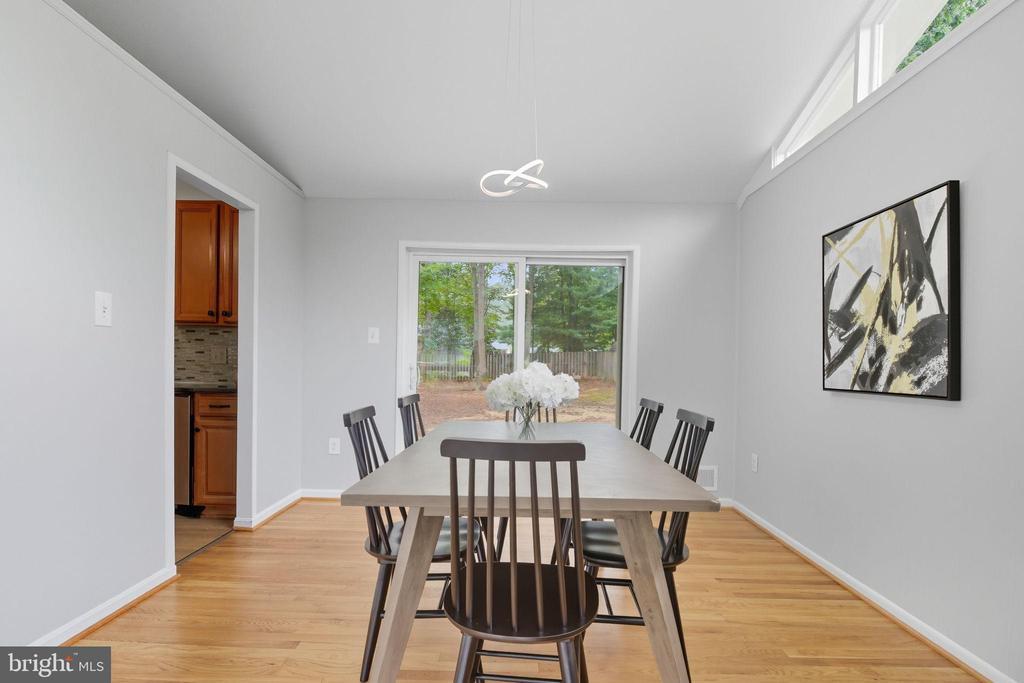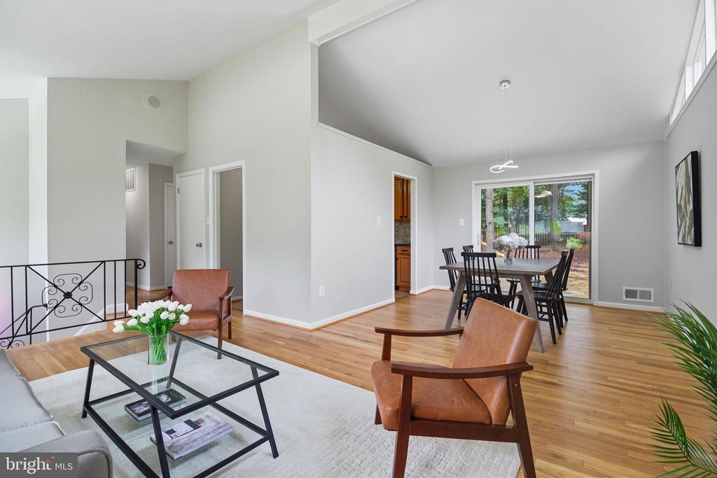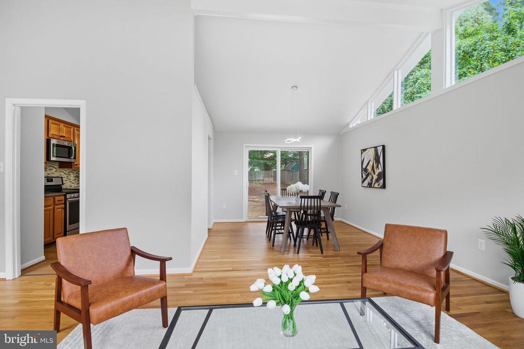 Welcome to this bright and cheerful split-foyer home, freshly updated and ready for new memories! Inside, the main level features an open living and dining area with warm wood floors and Mid-Century Modern flair. Soaring cathedral ceilings, triangle clerestory windows, and expansive picture windows fill the space with natural light and character. The dining area shines with modern lighting and opens directly to a large, partially fenced backyard complete with playground equipment, great for kids, pets, or weekend gatherings. The updated kitchen offers new stainless steel appliances (fridge, range, microwave, and dishwasher), granite countertops, new LVP flooring, and medium-tone wood cabinets, plus a window overlooking the yard so you can keep an eye on the action. On the main level, two spacious secondary bedrooms share a full hall bath, while the primary suite is tucked privately in the rear corner. This retreat includes a walk-in closet, dual-exposure windows for extra sunshine, and a private bath with a stall shower. The lower level expands the living space with a large finished rec room, carpeted and bright with natural light, ideal for games, movies, or family time. A bright basement bedroom offers extra storage and has been staged with a cozy kid-friendly playroom or reading nook. Completing the lower level, unfinished space houses laundry, mechanicals, and a handy workroom with side-access walkout, a benefit for projects or additional storage. Set on just under a third of an acre (0.31 acres), the property includes a concrete parking pad for one car plus abundant street parking. Lush banana trees frame the front plantings, while the backyard offers room for play and entertaining. The play equipment conveys along with a greenhouse for plant lovers. Recent updates include a new roof (2025) and fresh interior paint and updates the same year. Seasonal views of Royal Lake add to the charm of this home. Kings Park West is a welcoming community with wide, winding streets and Royal Lake at its heart—perfect for strolls and evening walks. Just a few houses away, residents can join the community pool, and nearby parks, playgrounds, and sports courts provide year-round recreation. Everyday errands are easy with plenty of shopping close by, and commuting is simplified with quick access to I-66 and the VRE. With George Mason University, cultural venues, and dining just minutes away, Kings Park West blends peaceful neighborhood living with convenience and connectivity.