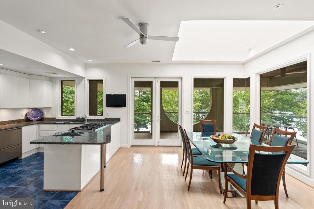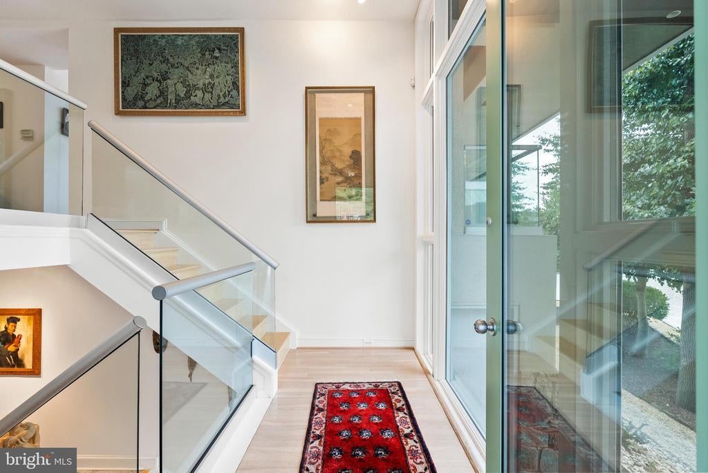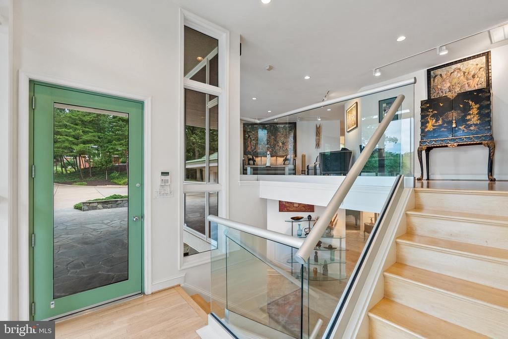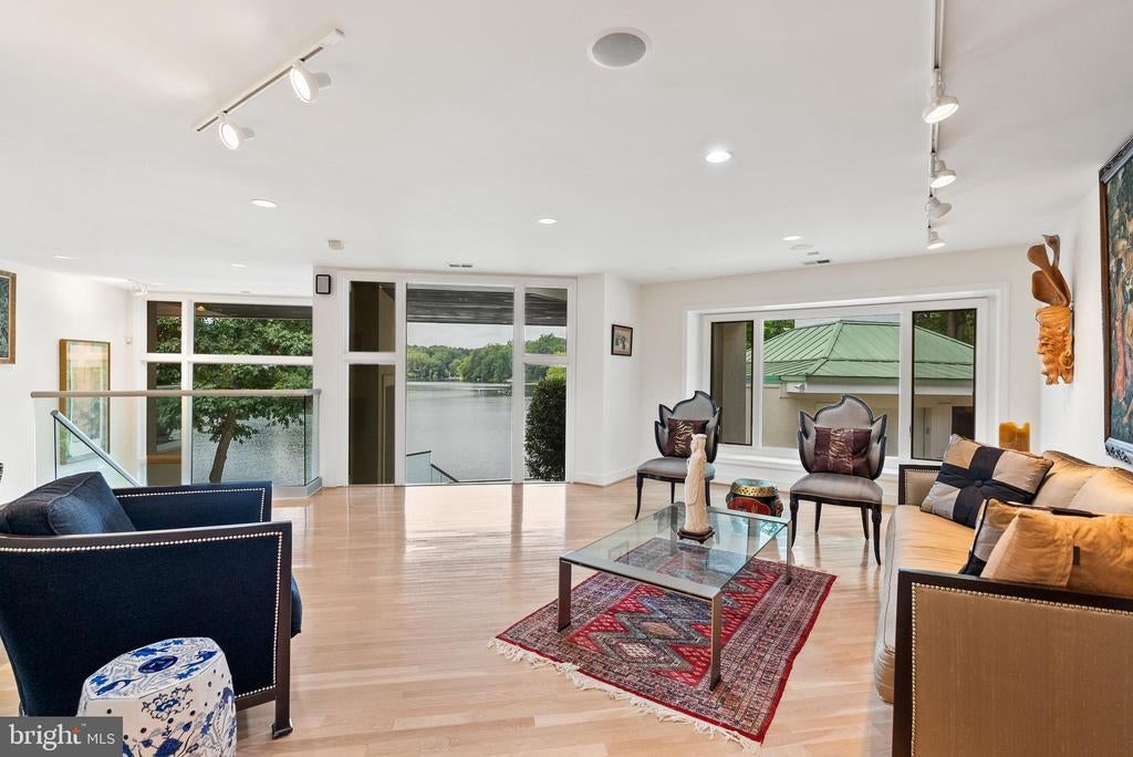 A rare offering on the magnificent shores of Lake Barcroft, this extraordinary multi-level contemporary residence stands as one of the most exceptional private estates on the lake—an architectural triumph successfully seamlessly blends world-class design, breathtaking water views, and refined elegance. Just minutes from Washington, D.C., the home is set on a private 28,200-square-foot peninsula spanning nearly 300 feet of prime waterfront offering commanding vistas of lakefront beauty. With 5 private beaches and endless opportunities for water sports and lakeside recreation, this sanctuary is designed to elevate daily living and inspire grand entertaining. From the moment you step into the dramatic 20-foot foyer enclosed in floor-to-ceiling glass, you are met with breathtaking lake views and masterful interior design. The main level offers a symphony of materials and craftsmanship, from imported German lacquer cabinetry in the chef’s kitchen, to the soaring coffered ceilings and natural light streaming through expansive glass walls. Premium appliances support both culinary performance and visual delight. The dining area, crowned by an architectural skylight, opens to a custom glass-railed balcony overlooking the lake — a sublime setting for elegant outdoor entertaining with seating for over 25 guests. Every room tells a story, including the primary suite with its serene water vistas, dual dressing areas, and spa-inspired bath featuring artisan blue glass tile, a steam-equipped shower, and a four-person jacuzzi tub. The lower levels offer space and versatility. On the Lower level 1 there is an expansive family room, a full bath, and a private suite — perfect for extended stays or multigenerational living. One level below, Lower Level 2 features a dramatic media theater with soaring 20-foot ceilings designed for private screenings. This area, with a separate entrance flows seamlessly to the landscaped stone patios along the shore. This is a home designed by visionaries and lived in by connoisseurs. Both consecutive owners have been avid collectors of fine art, and the residence reflects their cultivated taste — offering museum-worthy lighting, gallery-quality wall space, and an ambiance that is both soulful and sophisticated. Meticulously maintained and completely renovated in 2001, the property includes premium hardwood floors, whole house Sonos system, security, outdoor irrigation system, three-zone HVAC system and a detached oversized 2 car garage with full bath. The grounds are equally striking, with sculpted gardens, illuminated stone paths, and a private dock that invites boating, swimming, and lakeside leisure. An extraordinary opportunity to own a home that is as inspiring as it is livable — a true collector’s piece in its own right.
