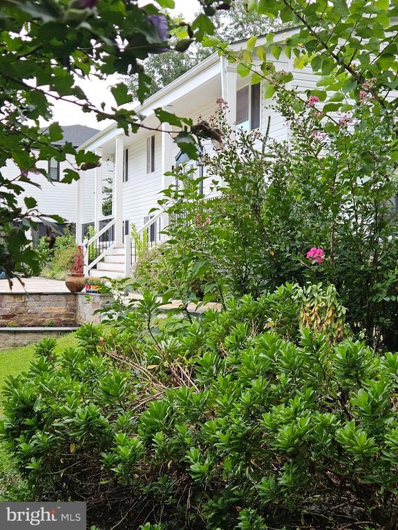 Step into a quaint Great Falls homestead where sunlight, gardens, and nature meet in harmony. This 5-bedroom, 3-full bath home offers a lifestyle of peace, outdoor living, and simple pleasures, just a short walk from the Village Center and within the Langley High School district. The white cottage exterior with classic columns welcomes you as you ascend to the travertine front piazza, framed by blooming white and pink crepe myrtles that provide privacy from the street while keeping the space sunlit. A pond with gentle waterfall sets a serene tone, perfect for morning coffee, afternoon tea, or entertaining friends and family. Inside, sunlight pours through generous windows into the open-concept living, dining, and kitchen area with recently refinished floors, creating and enhancing the home's natural beauty that feels both bright and intimate. A Vermont cast-iron fireplace serves as a warm, inviting focal point for cozy evenings or lively gatherings. The lower level offers great potential, featuring recently partially painted walls that allow room for your personal finishing touches. This level includes a comfortable bedroom, a versatile den—perfect for a home office or media room—a dedicated laundry area, and convenient access both from the two-car garage and a private rear entrance leading to the backyard. The private backyard homestead is designed for relaxation, creativity, and connection with nature. A deck overlooks the chicken coop, while paths wind through a bamboo meditation garden, greenhouse, and vegetable beds. A courtyard with a fireplace and seating invites outdoor meals or quiet reflection. Plum and cherry trees, blueberry bushes, and perennial berry beds (blackberry, raspberry, strawberry) provide fresh fruit and seasonal beauty, and flowering cottage beds complete the garden charm. This home offers the Great Falls lifestyle without the scale or maintenance of a large estate—perfect for those seeking a peaceful, character-filled homestead, where every corner invites living, gathering, and savoring life outdoors.