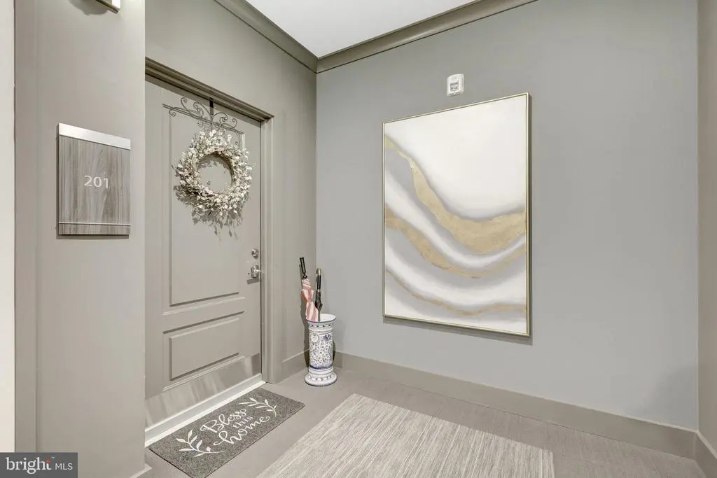 Two dedicated garage parking spaces set this home apart. Combined with a compelling new price, it’s easily one of the neighborhood’s best values. This stunning 2 bedroom, 2 bath, corner unit condo, where windows on two sides fill the space with warm, natural light is a stunner! With 9' tall ceilings and an open floor plan, this home feels bright, spacious, and perfect for both everyday living and entertaining. The heart of the home is the gourmet kitchen, featuring a large center island w/seating for 4 & stylish pendant lighting, a 5-burner cooktop, wall oven, built-in microwave, 42"cabinets, attractive tile backsplash, thoughtful touches like built-in trash/recycling, and a spacious pantry. Just off the kitchen, a private balcony is perfect for morning coffee or evening relaxation. The open living and dining rooms flow together seamlessly, creating a welcoming space for gatherings. The primary suite is a true retreat, complete with an oversized walk-in closet, a double vanity, and a large frameless walk-in shower. The second bedroom is sunny and spacious with its own large closet, while a hall bath and separate laundry room add convenience. Enjoy the safety and convenience of a secure building with an elevator. Commuting is easy with the Innovation Station metro just 1 mile away!