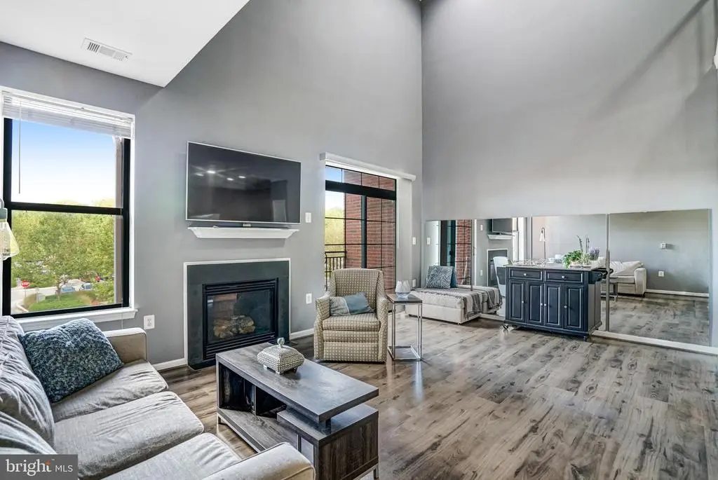 Step into this light-filled, two-level condo where comfort meets convenience in the heart of it all! Soaring ceilings and an open layout immediately welcome you into the living room, where a cozy fireplace sets the tone for relaxing evenings. Large windows bathe the space in natural light, and the open ceiling design allows your eyes to travel upward, creating a bright, airy, and expansive feel. Step out onto your private balcony to enjoy your morning coffee or unwind at sunset, and take advantage of the rare oversized storage closet right outside your door. The main level also offers a beautiful full bathroom and a spacious bedroom with a walk-in closet, perfect for guests or a home office. Upstairs, the entire top floor is your private retreat. The primary suite features a generous walk-in closet, a spa-like bathroom with a deep soaking tub and separate standing shower. Enjoy a versatile loft that overlooks the living room, ideal for an office, a hobby space, or cozy lounge. A full-size laundry room with built-in shelving keeps daily life organized and tucked away. This unique condo is perched above a vibrant collection of restaurants and shops, and just steps from the Virginia Railway Express station, offering unbeatable commuter convenience and endless parking for your guests. You’ll have two reserved parking spaces, a 4'x10' private storage cage for all your extras, and access to a beautiful community pool and clubhouse, perfect for summer days or weekend gatherings. Recent updates include a brand-new HVAC system and hot water heater (2024), giving you peace of mind for years to come. A rare blend of style, space, and lifestyle, this home invites you to slow down, settle in, and love where you live.