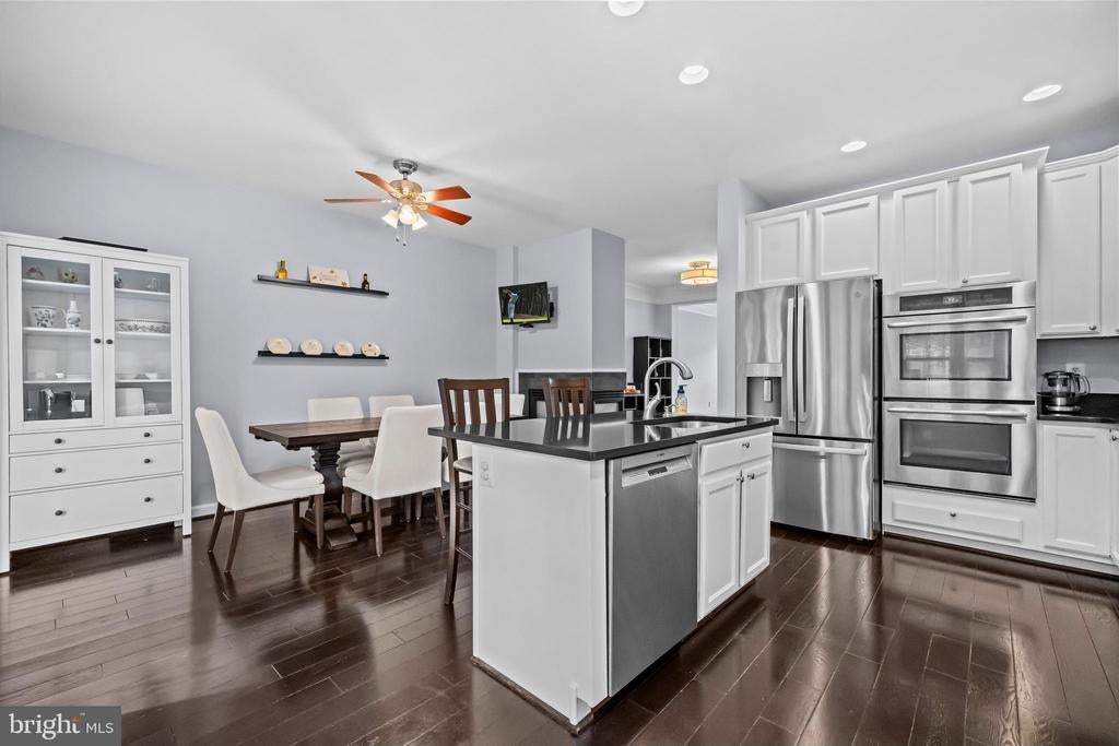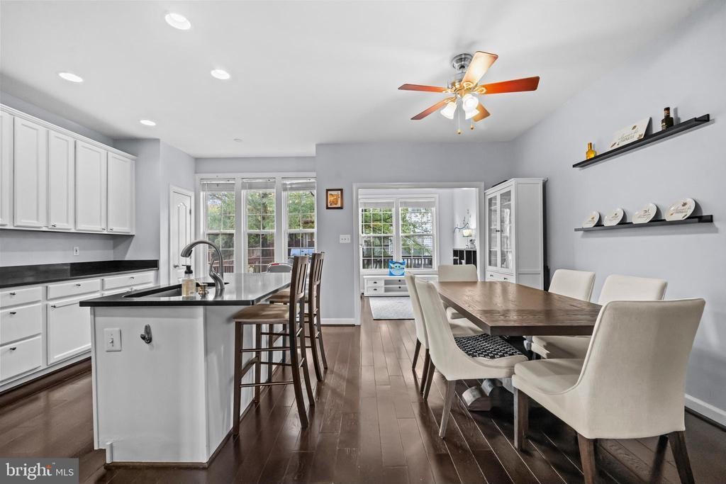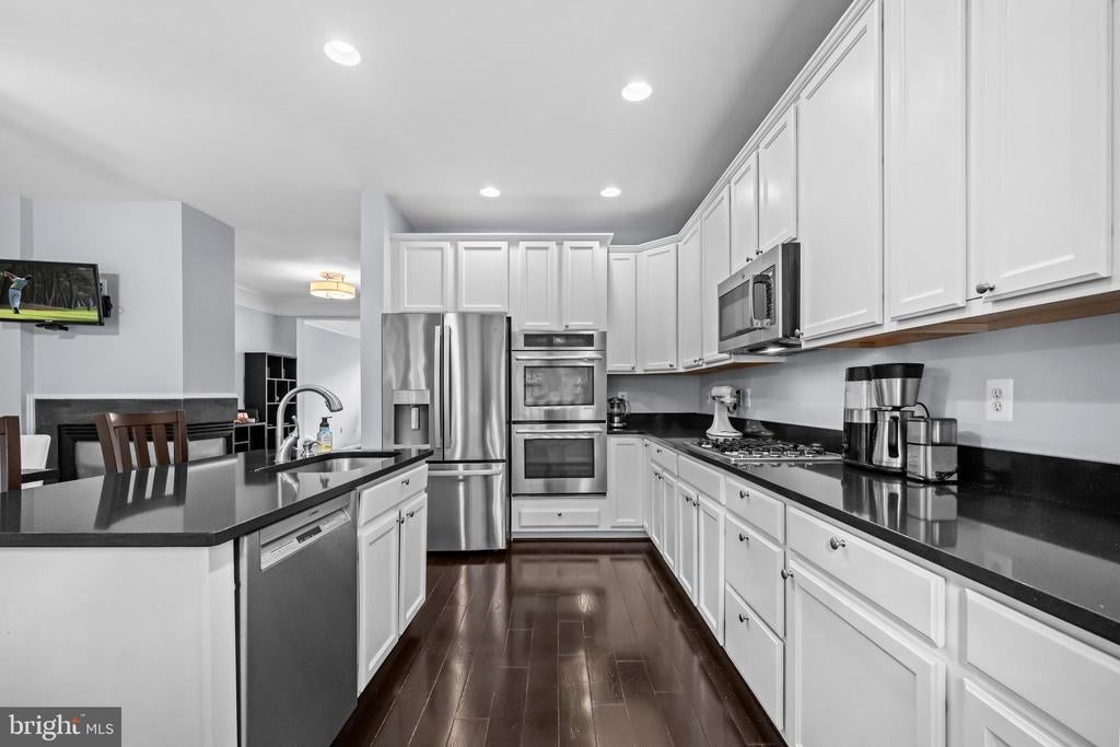 Improved Price!! Step inside this beautifully maintained townhouse, where soaring ceilings, hardwood floors, and an open three-level layout create a bright, inviting atmosphere. Generous bump-outs on every floor add versatility and natural light, making each space feel both expansive and comfortable. The updated kitchen shines with quartz countertops, resurfaced cabinetry, and newer stainless-steel appliances (refrigerator, microwave, and dishwasher). Upstairs, the primary suite offers a walk-in closet, a sunny sitting area, and a spacious bath with double vanity, soaking tub, and separate shower. The finished lower level provides extra flexible living space—perfect for a home office, gym, or media room. Thoughtful upgrades throughout include a roof replacement (2018), new main and lower-level flooring (2018), furnace (2021), and even an EV charger in the garage (2020). Enjoy park views from the front of the home, filling the interior with sunlight. The location is unbeatable: just a short stroll to Wegmans, parks, wooded trails, sports courts, and playgrounds, with quick access to I-66, Rt. 28, Rt. 50, Fairfax County Parkway, Fairfax Corner, and Fair Lakes.