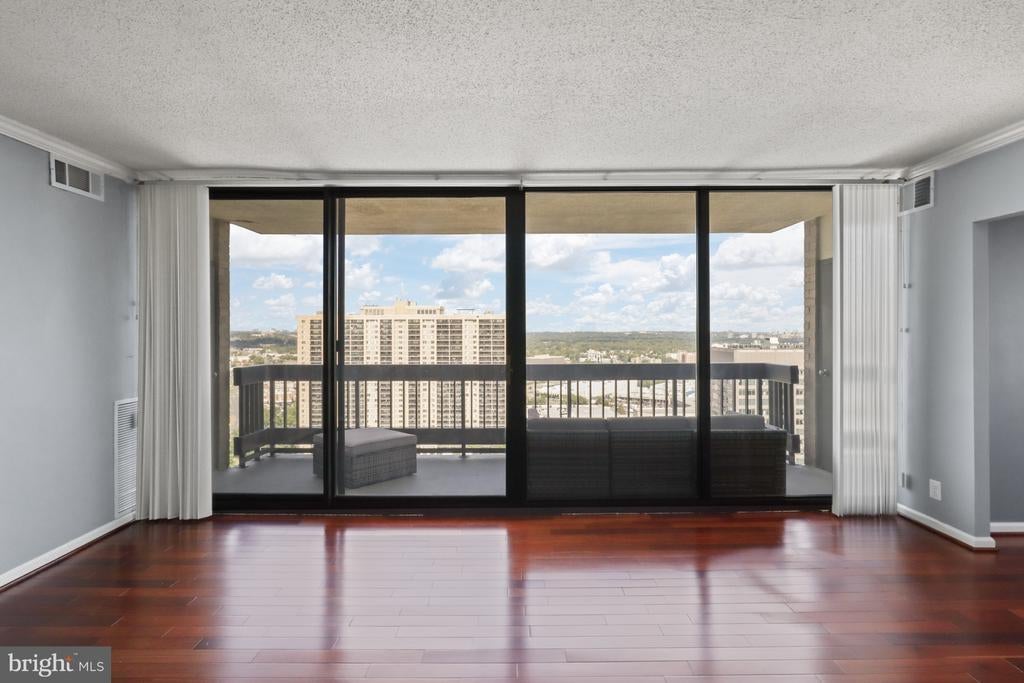 Welcome to a truly exceptional home! This rare end-unit 'Marseille 3A' model in the exclusive Skyline community offers a perfect blend of luxury and convenience. Only 26 units exist w/ this floorplan, making this a rare find you won't want to miss. Step inside and discover an elegant space with Brazilian wood flooring and crown molding throughout. The kitchen is a chef's delight, featuring sleek cherry cabinets, granite countertops, and high-end stainless steel LG Elite appliances. You'll love the convenience of the separate laundry room, complete with a full-sized Samsung washer and dryer—a feature that truly sets this unit apart. The intelligent floor plan places the primary bedroom on the opposite side of the unit from the other two bedrooms, providing a quiet and private retreat. The updated bathrooms and a dual heating/cooling system on the balcony add to the home's comfort and appeal. The east-facing windows in the unit feature Perlite 35i window treatments, a high-end solution that blocks UV and other light. Enjoy a breathtaking scenic vista of the DC skyline, showcasing iconic landmarks like the US Capitol, Washington Monument, and Old Town Masonic Temple. This property also offers an impressive list of unique amenities, including two garage spaces and access to the community's exclusive EV charging station, a rare find in the area. Prime Northern Virginia Location. Located in the heart of Northern Virginia, this home provides a seamless urban lifestyle. You're just minutes from major hubs and attractions like BRAC, Pentagon City, Amazon HQ2, Old Town and downtown DC. Enjoy easy access to I-395, I-495, and Reagan National Airport, making your commute a breeze. Developed by Charles E. Smith in the 1970s, the Skyline community in Bailey’s Crossroads offers a vibrant, walkable lifestyle with dining, shopping, and entertainment just steps away. This is more than just a home; it's a lifestyle of luxury, location, and low-maintenance living. It’s move-in ready and waiting for you!