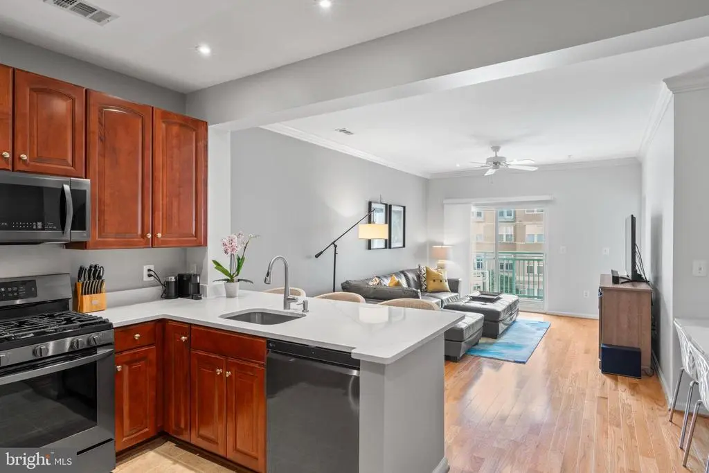 2.25% VA assumable loan is an option! Great sunny location in a secure building with the balcony overlooking the pool and courtyard. Move-in ready with an open floor plan, neutral paint, hardwoods and custom carpet. The updated gourmet kitchen includes granite counters and black stainless appliances. It is light and bright with recessed lighting and custom window treatments. The primary bedroom is spacious with two walk-in closets with designer elfa closet organizers. This unit offers two assigned parking spaces, GL039 and GL043. Updates include: Carpet (2024) - Black stainless appliances (2020) – Granite counters (2020) - Recessed lights with dimmers (2020) – Full size washer/dryer (2020) – Water heater (2020) – HVAC (2018) Live a convenient and walkable lifestyle in the Reston Town Center. Minutes to the Reston Metro, restaurants, shops and grocery stores (Wegmans and Trader Joe’s). Dulles Airport is 6.3 miles, easy access to Dulles Toll Road, Rt. 28 and Fairfax County Parkway. Community amenities: Concierge desk, pool, business center, party room and exercise room. Visitor parking in plentiful in the surrounding garages. Mon-Fri after 5pm and on weekeds is free.