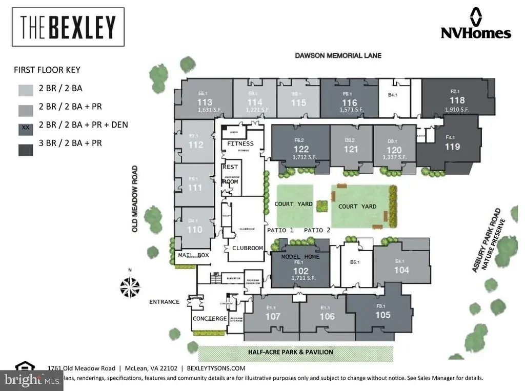 Luxurious Grandeur condo, 12-foot Ceilings, Rare Find, One of a Kind Unit at the Bexley in Tyson's East. Stunning courtyard views! Former Model Home, gorgeous, 1,711 sq ft, 2-bedroom Suites include 2 oversized walk-in closets & each has its own en suite bathrooms + a DEN/Private Office. Welcome to The Bexley, NVHome's newest luxury condominium building in Mclean's highly sought-after Highland District. Den (can be used as study/nursery/guest bedroom), Powder Rm, Laundry Rm, Open light-filled floor plan with views of the courtyard and Scotts Run Tree Preserve. 2 Reserved Underground Car Parking (spaces #292 & 202). Ample Secure Storage space # TS170** 100 sq ft (#) in the underground parking area. Plentiful parking spaces are available along the street. This modern residence features a waterfall quartz island, a gourmet chef-inspired kitchen with shaker style cabinets, integrated smart LG appliances, 7-inch wide plank flooring throughout, luxurious bathrooms w/ sleek porcelain tile, Vera-spa showers, and much more. The onsite community facility amenities include front desk concierge services full of modern comforts and secured entry, a tranquil courtyard with grills and fire pits, Amazon hub lockers for deliveries, car-charging stations, private storage bike rooms, a clubroom w/ park views, and a fitness center. Walkable to Metro, Capital One Center, and Wegmans. Just a couple of blocks to McLean Metro (Silver Line) for easy access to local business destinations and tourists. Minutes to Tysons, DC, Rosslyn, and Dulles & National Airports. Easy access to I-495. Close to Washington DC and Alexandria.