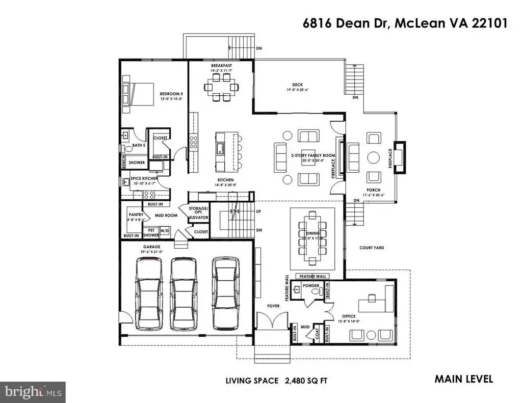 Welcome to a rarely available contemporary masterpiece nestled within the highly sought-after community of McLean. Thoughtfully designed to harmonize indoor and outdoor living, this home offers over 7,475 square feet of finished space across three levels, centered around a stunning landscaped courtyard that brings natural light deep into the heart of the home. From the moment you enter, you’re greeted by sophisticated finishes, dramatic design, and incredible natural light. A private office with soaring ceilings, built-ins, and corner windows sits at front of the home, offering a bright and inspiring workspace. Decorative wall treatments and carefully planned sightlines guide you toward the breathtaking courtyard, the true centerpiece of the home—visible from the entry, dining room, and beyond. The two-story family room features an 80” linear fireplace with floor-to-ceiling porcelain tile, framed by expansive windows that flood the space with sunlight. Step outside to an entertainer’s dream setup: a covered porch with a gas fireplace and ceiling fan, plus a large open deck that leads to the private backyard. The main level offers ultimate functionality and elegance with a spacious bedroom suite, a next level contemporary Chef's kitchen featuring custom cabinetry, an oversized island, and top-of-the-line Thermador stainless steel appliances. A separate Catering kitchen, mudroom w/ pet shower, built-ins, walk-in pantry and secondary washer/dryer setup add to the home’s seamless convenience. Upstairs, the loft with wet bar overlooks both the family room and courtyard, providing a second cozy gathering space. This level also boasts four large en-suite Bedrooms including sumptuous owner’s suite, a private retreat featuring dual walk-in closets with custom built-ins, a spa-inspired bath with separate dressing area, heated floors, oversized shower, floating double vanities, and soaking tub. The fully finished lower level is an entertainer's dream, featuring a well-appointed wet bar, cozy gas fireplace, spa-style bath with sauna, powder room, and a large recreation room. Two guest bedrooms with walk-in closets ensure comfort for overnight visitors. A dedicated space with 10-foot ceiling offers the perfect opportunity to create a golf simulator or home theater. Additional highlights include: 3-car garage, EV chargers, Elevator shaft for future lift installation, Security cameras, Video doorbell, and Structured wiring throughout selected rooms. Beyond the walls of this magnificent residence lies the convenience of McLean. With its proximity to Tysons Corner, Washington, D.C., two major airports, and major transportation routes, you're effortlessly connected. Enjoy the convenience of nearby shops and restaurants, making every day a delightful experience. This is more than just a house; it's a testament to pride in workmanship and an embodiment of luxury living. Your dream home awaits! Ready for move-in!