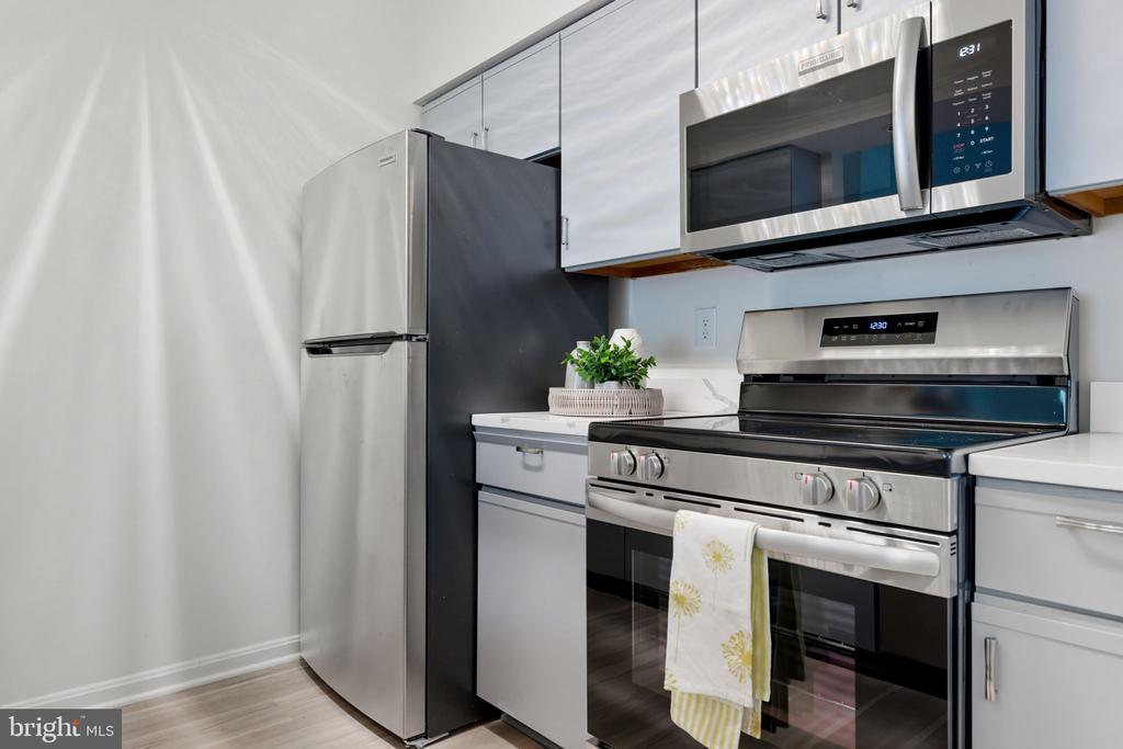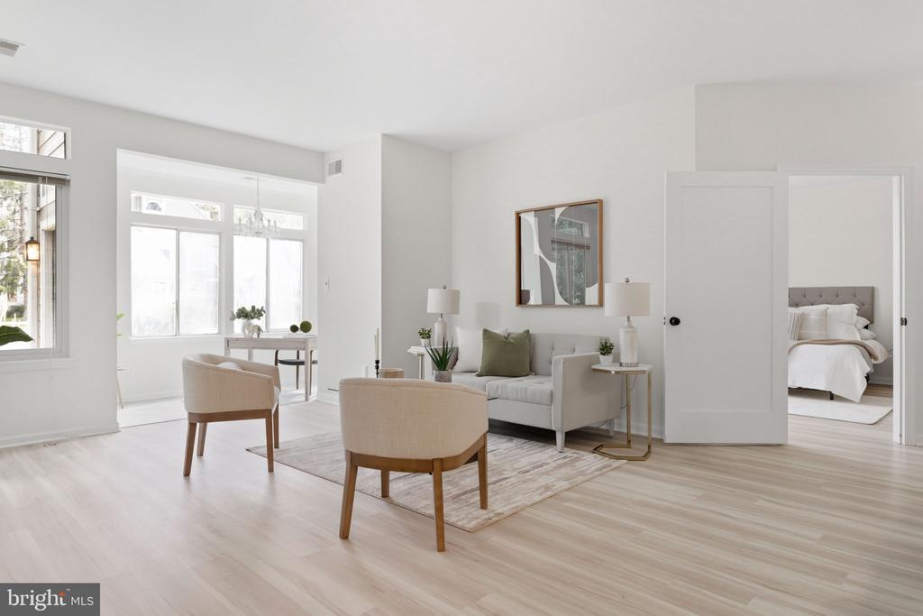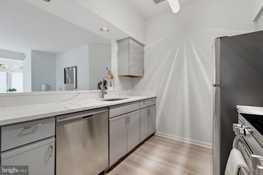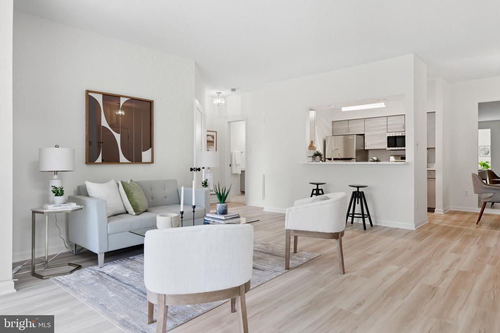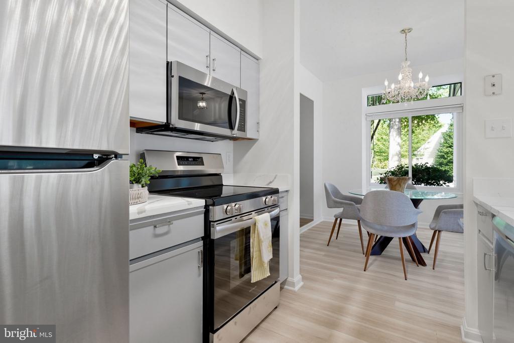 Location! Location! Location! Rarely available villa-style one bedroom plus DEN condo featuring soaring ceilings and a bright, open layout. This beautifully updated home offers brand-new LVP flooring, fresh designer paint, and a fully remodeled kitchen with new stainless-steel appliances and Quartz counters. The bathroom has been tastefully renovated with contemporary finishes and fixtures with clothes washer and dryer in unit. Enjoy the flexibility of a spacious den—perfect for a home office, guest space, or reading nook. Parking is conveniently located directly in front of the unit for easy access. Located in a sought-after community with a sparkling neighborhood pool and plenty of green space, just 0.25 miles to shopping, grocery stores, and restaurants in Fairfax Town Center. The perfect blend of comfort, convenience, and style—move-in ready and waiting for its new owner!