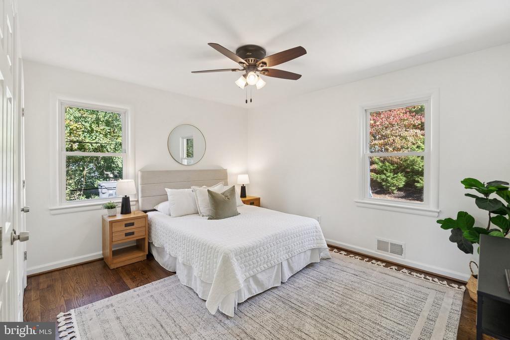 In a quiet neighborhood surrounded by trees in Falls Church, 3333 Slade Run Drive offers generous space, thoughtful updates, and an incredible backyard setting. This five-bedroom, four full bath home sits on nearly half an acre, creating a rare opportunity for both comfort and outdoor living. Inside this expanded and renovated cape cod-style rambler, you’ll find an inviting open floor plan with refinished pine hardwood floors in a stylish, modern stain. The updated kitchen features hard marble countertops, stainless steel appliances, and flows seamlessly into the dining and living areas — perfect for gathering and entertaining. Upstairs, large bedrooms feature updated en-suite bathrooms, spacious closets outfitted with Elfa organizers, offering excellent storage and flexibility. The home has been freshly painted throughout in Benjamin Moore Chantilly Lace, providing a bright and welcoming backdrop. The walk-up lower level expands the home’s versatility, boasting the fifth bedroom, upgraded LVP flooring, kitchenette cabinetry with granite countertops, a laundry room, and flexible space for an exercise area or home office. There’s also an additional storage room for seasonal items and organization. Enjoy the inviting front and side porches, perfect for morning coffee or relaxing, plus a storage shed for gardening tools and outdoor essentials. Outside, the expansive yard and back patio are ideal for hosting, playing, or simply enjoying the peaceful setting. Major systems — including the roof, windows, and HVAC — were all replaced in 2022, offering peace of mind for years to come. With its open layout, generous lot, and move-in-ready updates, 3333 Slade Run Drive is a standout home in one of Falls Church’s most peaceful neighborhoods.