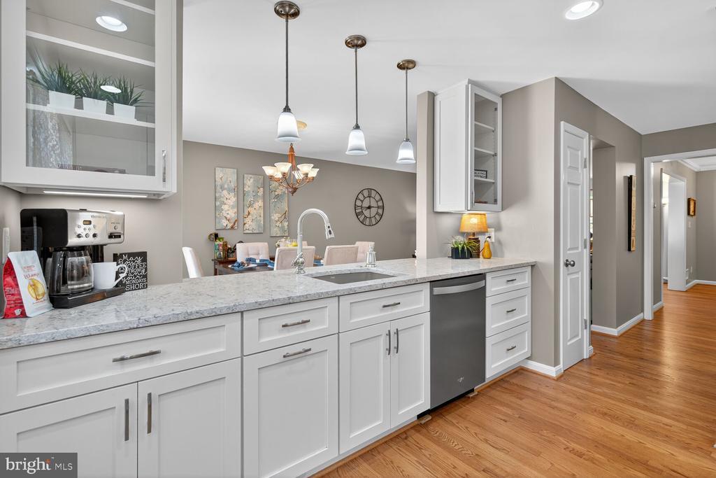 ****OPEN HOUSE SUNDAY NOV.11, 1-4PM****This beautifully updated all-brick townhome offers classic style, modern upgrades, and an unbeatable location within the highly sought-after West Springfield High School pyramid. From the moment you step inside, you’ll notice the quality craftsmanship and attention to detail that make this home truly move-in ready. Gleaming hardwood floors flow throughout the main and upper levels, complemented by updated lighting and six-panel doors that give the home a fresh, timeless feel. The remodeled kitchen is a showstopper—featuring white Shaker-style cabinets, quartz countertops, recessed and pendant lighting, glass-front accents, and stainless steel appliances including a five-burner gas range, French-door refrigerator, built-in microwave, and a quiet dishwasher with a third rack. A thoughtfully enlarged opening between the kitchen and dining area enhances flow and natural light, making this space ideal for entertaining. Upstairs, you’ll find three bedrooms with hardwood floors and ceiling fans, including a primary suite with a walk-in closet and beautifully renovated bathroom. The third bedroom also includes a walk-in closet, and all three full baths plus a half bath have been updated with contemporary finishes. The expansive lower-level recreation room is perfect for movie nights or gatherings, already set up for surround sound and offering additional closet space for organization and recessed lighting. Enjoy quiet outdoor living on the all-brick patio, surrounded by mature trees and complemented by a rebuilt shed for storage. Practical updates include vinyl double-pane tilt-in windows, replaced exterior doors and sliding glass door, electric panel replaced in 2015, and HVAC, furnace, and hot water heater replaced in 2019. The roof was replaced in October 2025 with 40-year shingles, ensuring peace of mind for years to come. This home’s HOA handles exterior maintenance, including roof replacement, gutter cleaning, painting, mowing, trash and recycling, snow and leaf removal, and upkeep of sidewalks, brick walls, and playgrounds—so you can spend more time enjoying your home and community. Two assigned parking spaces sit just steps from the back gate, with additional street parking available. Commuters will love the convenient access to I-95, I-395, I-495, Fairfax County Parkway, and the Franconia-Springfield Metro Station (Blue Line), as well as the VRE Rolling Road Station only 1.7 miles away and a Metro bus stop to the Pentagon nearby. Located close to Fort Belvoir, this neighborhood also offers sidewalks leading to tot lots and playgrounds, nearby pool membership options, Verizon FiOS service, and proximity to Lake Accotink Park—a 493-acre destination for boating, trails, picnicking, and family fun. With its extensive updates and prime West Springfield location, this home combines style, comfort, and convenience in one exceptional package.