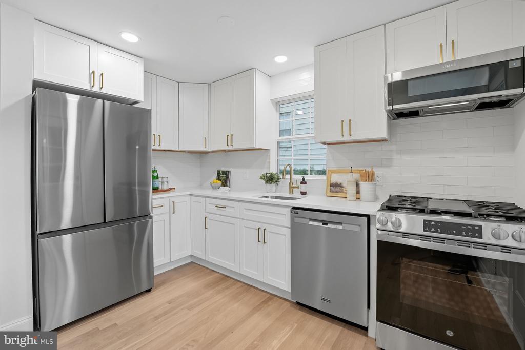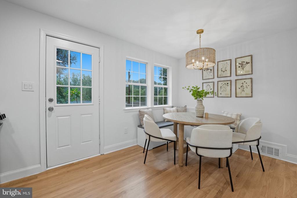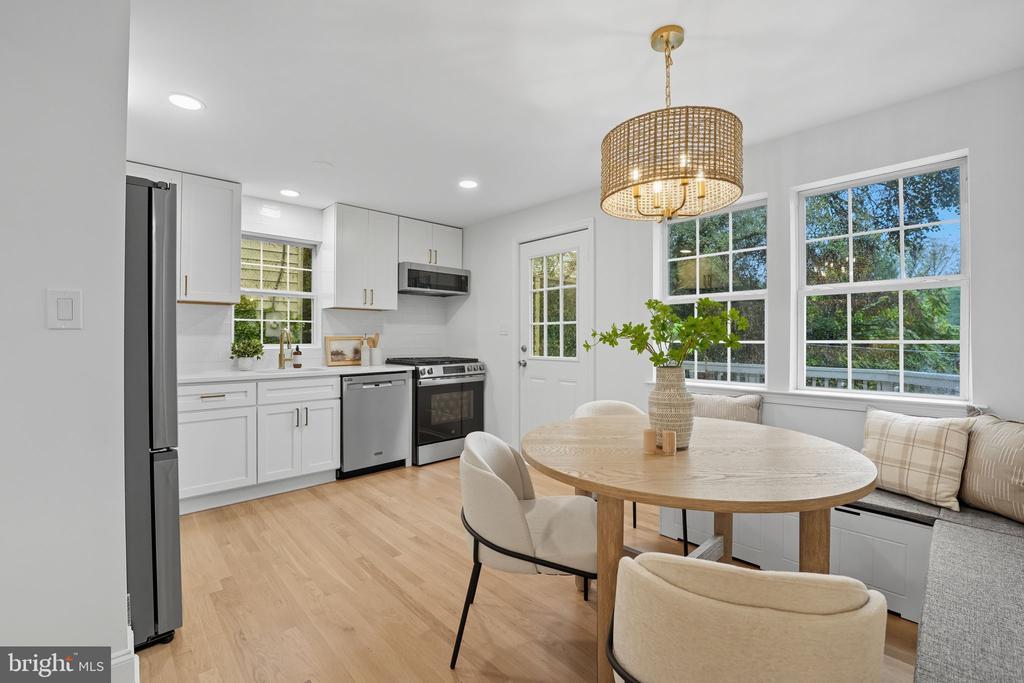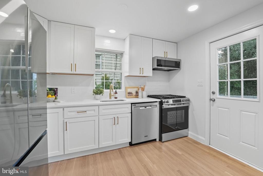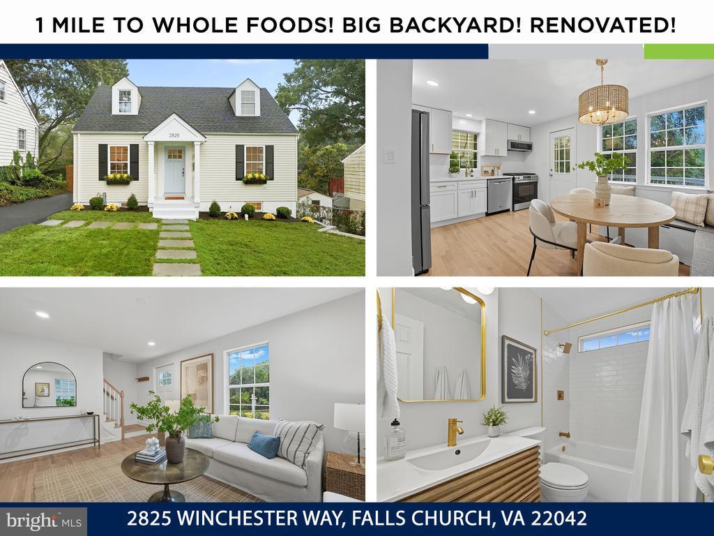 Step inside this stunningly renovated Cape Cod where timeless charm meets modern design—all less than a mile to downtown Falls Church City and Whole Foods! From the moment you arrive, you’ll be drawn in by the bluestone walkway and cheerful light-blue front door that set the tone for the style and warmth inside. The main level welcomes you with sun-filled living spaces and a versatile layout designed to fit your lifestyle. At the heart of the home, the fully renovated kitchen impresses with crisp white shaker cabinetry, Calcutta quartz countertops with subtle gold veining, and new high-end stainless steel appliances. A chic dining room chandelier sparkles, while the open flow to the spacious family room makes this the perfect place to gather for Sunday game days or cozy evenings at home. Just off the kitchen, step out to the deck and enjoy effortless al fresco dining. Two bright bedrooms and a beautifully renovated full bath complete the main level, featuring floor-to-ceiling subway tile, bold black vanity, marble-inspired counters, and stylish lighting. Upstairs, two additional bedrooms await—including an expansive primary suite that feels unique for this style of home, thanks to a thoughtful addition. With recessed lighting, wide-plank luxury vinyl floors, and a serene vibe, it’s a true retreat. The upstairs bath continues the spa-like feel with a floating vanity, subway-tiled shower, gold fixtures, and a deep soaking tub perfect for unwinding. The lower level is a dream bonus space—featuring a full bathroom, freshly carpeted recreation room, and a versatile room that could serve as a guest space, home office, or playroom. With walk-out access, this level is ideal for entertaining, game nights, or hosting visitors. Outside, the brand new stamped concrete patio and large grassy yard invite you to relax, play, and entertain. Recent upgrades include a brand-new HVAC system (2025), a newer roof, a fresh asphalt driveway, and landscaping that make this home truly turnkey. All of this comes with an unbeatable location—just minutes from the heart of Falls Church City, where you’ll enjoy award-winning restaurants, charming shops, Saturday farmers markets, community events, and the ease of nearby Metro access. The unique combination of size, condition, location, and price makes this one of the best values inside the beltway!