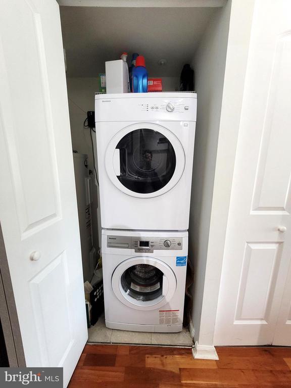 Built-In Microwave, Built-In Range, Dishwasher, Disposal, Dryer-front loading, Icemaker, Oven/Range-Electric, Refrigerator, Range hood, Stainless Steel Appliances, Washer/Dryer Stacked, Washer-front loading, Water Heater