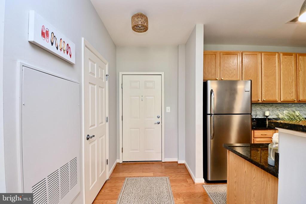 OPEN HOUSE: PLEASE USE FRONT DOOR OF THE BUILDING. FOLLOW SIGN- Bright 2 BR 2 BA condo freshly painted with new HVAC, new dishwasher, new Washer Dryer and new light fixtures. An elevator takes you from the 1 car garage to the elevator. There is additional space in the driveway. The Unit has an open floor plan with wood floors. There is a large walk in laundry room with storage space. Conveniently located near the Fairfax Town Center, commuter routes, shopping and restaurants.