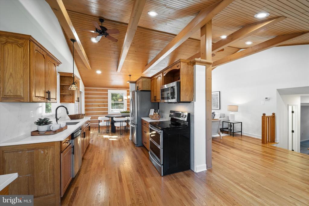 Welcome to this beautifully updated 5-bedroom home in the desirable Providence Woods neighborhood of Falls Church! Offering 2400 square feet of living space, this property combines modern updates with thoughtful features for everyday comfort and convenience. Step inside to a bright and spacious open floor plan with soaring cathedral ceilings, new wood floors in the kitchen, and freshly painted interiors. The kitchen is complete with updated countertops, stainless steel appliances, a large pantry, and flows seamlessly into a sunny sunroom—perfect for morning coffee or casual dining. The home boasts renovated bathrooms, a recently updated laundry room (2024) with added storage cabinets, and custom closet organization systems in two bedrooms. Downstairs, enjoy a fully finished basement with durable LVP flooring, ideal for a playroom, home gym, or media space. Energy-efficient features include a tankless water heater and new attic insulation for year-round comfort. Outside, entertain or unwind on the Trex deck overlooking the fully fenced backyard with plenty of room to play, plus a relaxing hot tub included. The oversized garage offers extra storage and parking. Set on a large lot in a quiet neighborhood inside the Beltway, with no HOA, this home is ready for you to move right in and enjoy.