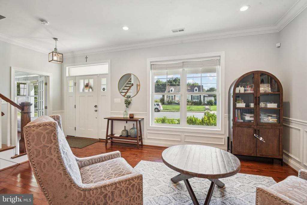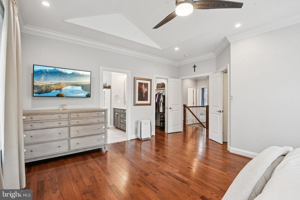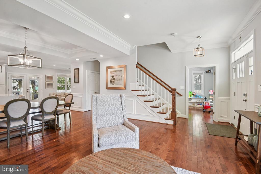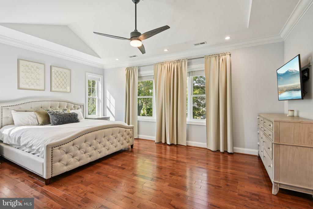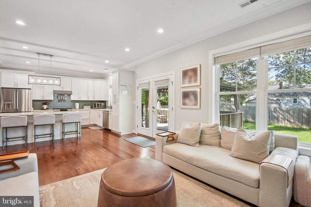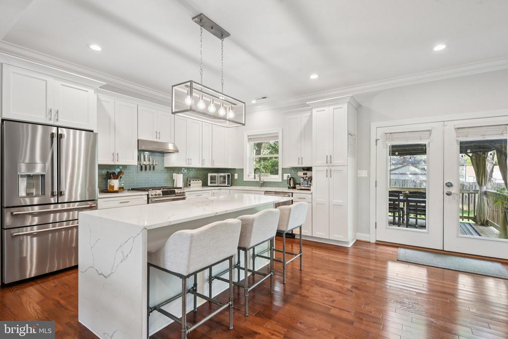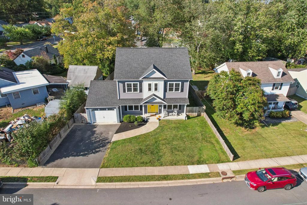 Welcome to 6938 Weston Road, a stunning 5-bedroom, 4.5- bath home in one of Falls Church’s most desirable neighborhoods. Built in 2020 by DC First Properties, this home feels like new, offering the perfect blend of craftsmanship, style, and comfort. Step inside to bright, open spaces with 9-foot ceilings, wide-plank hardwood floors, and elegant trim details throughout. The main level features a private home office or guest suite with a full bath, a formal dining area, and a spacious family room centered around a cozy gas fireplace. The chef’s kitchen is a true showstopper with a waterfall island, GE Cafe stainless steel appliances, range hood, and soft-close cabinetry which flows seamlessly to the family room and out to a large deck, perfect for entertaining and summer nights. Upstairs, the primary suite offers two walk-in closets and a spa-inspired bath with a freestanding soaking tub and Moen rain shower. Three additional bedrooms, two full baths, and a laundry room with custom built-ins complete the second floor. The third-level loft provides a flexible bonus space! Ideal for a playroom, media lounge, or guest retreat. Outside, enjoy a fenced backyard with mature trees. An irrigation system was recently added, along with a buried dry well. Practical luxury abounds with a mudroom featuring custom built-ins, dual Trane HVAC systems, and an attached garage with interior entry. Perfectly located just minutes from Mosaic District, Bailey’s Crossroads, and major commuter routes, this home combines modern design with everyday convenience in the heart of Falls Church.