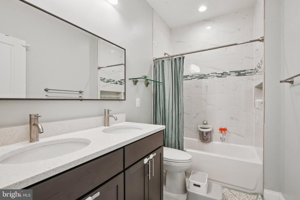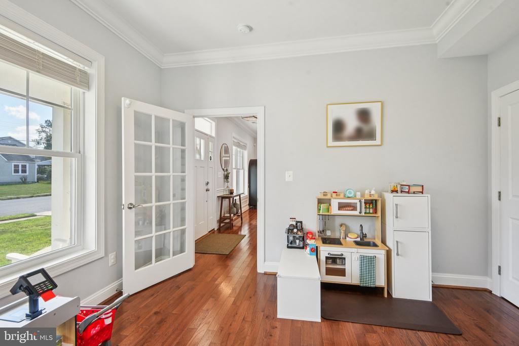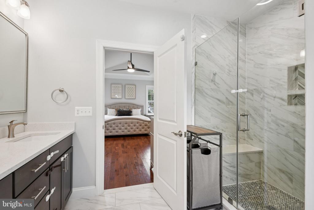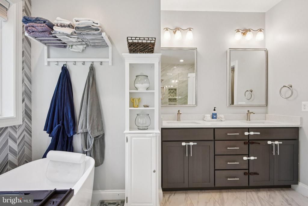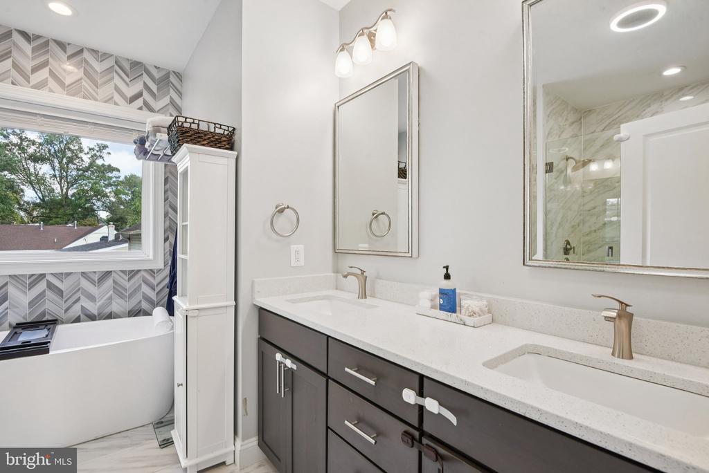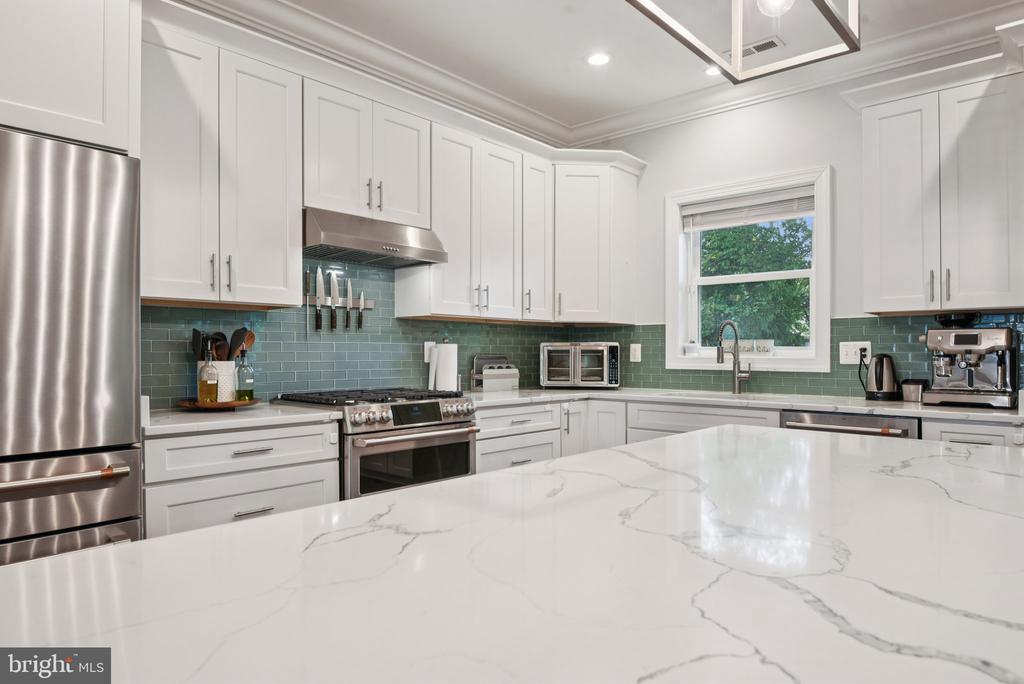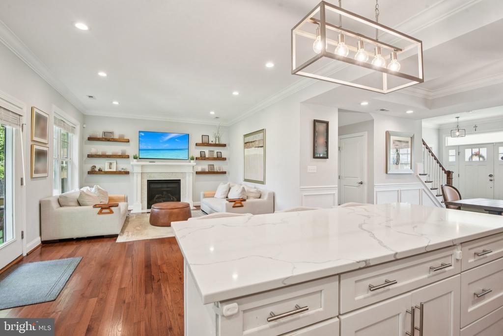 Welcome to 6938 Weston Road, a stunning 5-bedroom, 4.5- bath home in one of Falls Church’s most desirable neighborhoods. Built in 2020 by DC First Properties, this home feels like new, offering the perfect blend of craftsmanship, style, and comfort. Step inside to bright, open spaces with 9-foot ceilings, wide-plank hardwood floors, and elegant trim details throughout. The main level features a private home office or guest suite with a full bath, a formal dining area, and a spacious family room centered around a cozy gas fireplace. The chef’s kitchen is a true showstopper with a waterfall island, GE Cafe stainless steel appliances, range hood, and soft-close cabinetry which flows seamlessly to the family room and out to a large deck, perfect for entertaining and summer nights. Upstairs, the primary suite offers two walk-in closets and a spa-inspired bath with a freestanding soaking tub and Moen rain shower. Three additional bedrooms, two full baths, and a laundry room with custom built-ins complete the second floor. The third-level loft provides a flexible bonus space! Ideal for a playroom, media lounge, or guest retreat. Outside, enjoy a fenced backyard with mature trees. An irrigation system was recently added, along with a buried dry well. Practical luxury abounds with a mudroom featuring custom built-ins, dual Trane HVAC systems, and an attached garage with interior entry. Perfectly located just minutes from Mosaic District, Bailey’s Crossroads, and major commuter routes, this home combines modern design with everyday convenience in the heart of Falls Church.