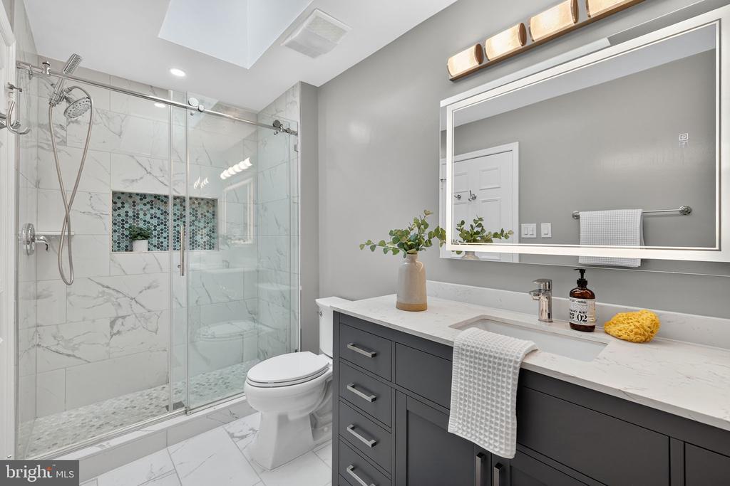 ** OPEN HOUSE SATURDAY 10/25 12-2 PM ** MOVE-IN READY AND GORGEOUS HOME IN POPULAR FRANKLIN GLEN ** Lovingly cared for and updated three-level colonial with front porch and two-car garage ** FOYER with custom ceiling light, coat closet and powder room ** UPPER LEVEL with 4 bedrooms, closet organizers, linen closet, ceiling fans and 2 full LUXURY bathrooms (2022) ** PRIMARY SUITE with cathedral ceilings, skylights, ceiling fan, dressing area and ensuite luxury bath ** LOWER LEVEL den/guestroom with ensuite full bath with Jacuzzi soaking tub and shower ** FRESHLY PAINTED THROUGHOUT ** Engineered hardwood floors throughout the main level (2018) ** FORMAL LIVING ROOM with recessed lights ** FORMAL DINING ROOM with recessed lights and chair-rail ** STUNNING GOURMET KITCHEN with granite counters, greenhouse kitchen window, solid maple wood cabinets, double wall ovens, built-in microwave, (exhaust fan vented to the outside) ** Bosch Dishwasher and a brand new ceramic cooktop ** BREAKFAST ROOM with bay window overlooking the beautiful backyard ** FAMILY ROOM with woodburning fireplace, bay window, ceiling fan, garage access and access to large screened porch with fan and skylights ** OPEN TREX DECK with steps leading to the private and level backyard ** FINISHED LOWER LEVEL with rec room, beverage bar with bar sink, Berber carpet and recessed lights ** DEN/GUEST ROOM with well windows, closet and ensuite bath with tub/shower ** LAUNDRY/UTILITY ROOM with storage shelves, front load washer and dryer and sump pump ** GAS LINE INSTALLED (2018) ** TOP OF THE LINE CARRIER furnace (2019) ** PVC PIPES upgraded to copper (2022) ** FINISHED GARAGE with storage cabinets, EV charger and new garage doors and opener (2017) ** ARCHITECTURAL SHINGLE 25-30+ YEAR ROOF (2013) ** GREAT COMMUNITY AMENITIES and EASY ACCESS to major commuter routes: Route 28, Fairfax County PWY, Route 50, Dulles Toll Road, Reston Metro Station and Dulle International Airport ** Chantilly Highschool pyramid **
