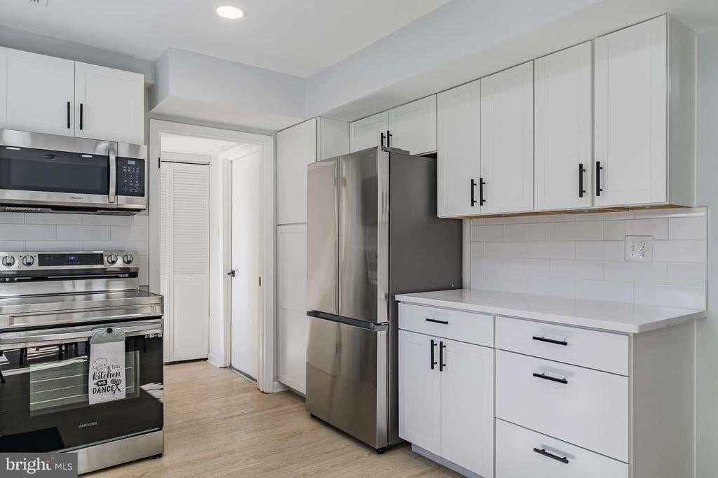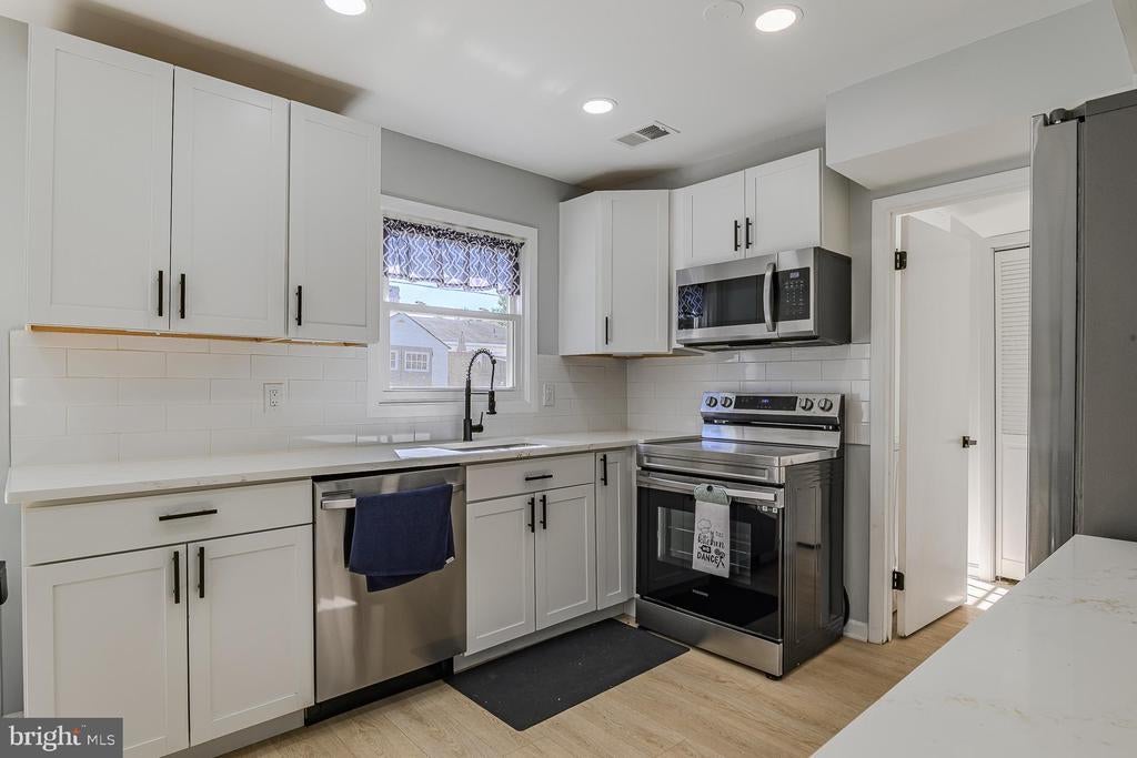 Welcome to this spacious and beautifully updated 4-bedroom, 2-bath home in the sought-after Greenbriar community of Fairfax. Offering flexible living spaces and thoughtful upgrades throughout, this home is perfect for multi-generational living with two main-level bedrooms and convenient access to shops, dining, and major commuter routes. Step inside to find a bright and inviting living room featuring a wood-burning fireplace with a brick hearth and surround, classic mantle, and recessed lighting — ideal for cozy evenings. Additional storage is available under the stairs. The updated kitchen is a true highlight, featuring quartz countertops, stainless steel appliances (electric range), tile backsplash, abundant cabinetry, recessed and under-cabinet lighting, and table space for up to eight. A sliding glass door opens to the private fenced backyard with a patio and storage shed, perfect for entertaining or relaxing outdoors. The main level also includes two spacious bedrooms with recessed lighting and ample closet space, a full bath with a large shower, and a generous coat closet with built-in shelving. The laundry/mudroom includes a washer, dryer, and access to the patio through an updated glass-pane door. Upstairs, you’ll find the primary bedroom with three deep closets and recessed lighting, a second large bedroom, and a full hall bath with a tub/shower combo. Each upstairs bedroom features its own independent air conditioning unit for personalized comfort. A hallway linen closet adds extra storage convenience. The garage offers a variety of storage options, including pull-down attic access, a workbench, a car charging outlet, and a garage door opener. Other features include luxury vinyl plank flooring throughout, updated lighting, and neutral paint. Conveniently located near Fairfax County Parkway, Route 50, Route 28, and I-66, this home offers easy access to the Stringfellow Commuter Lot, the Chantilly Regional Library, and nearby shopping and dining. Enjoy comfort, flexibility, and a prime location — all in one of Fairfax’s most desirable neighborhoods!