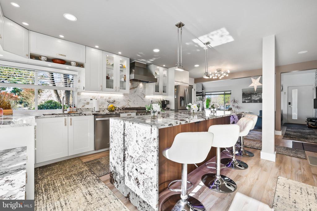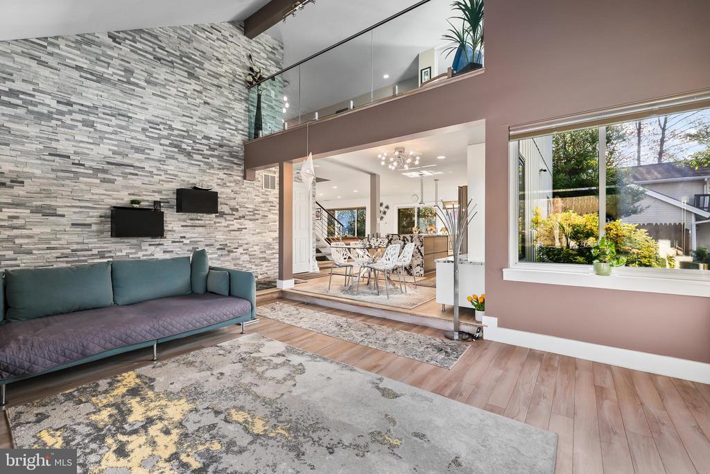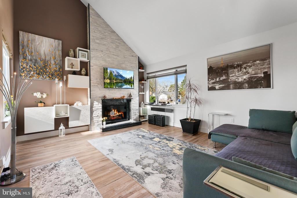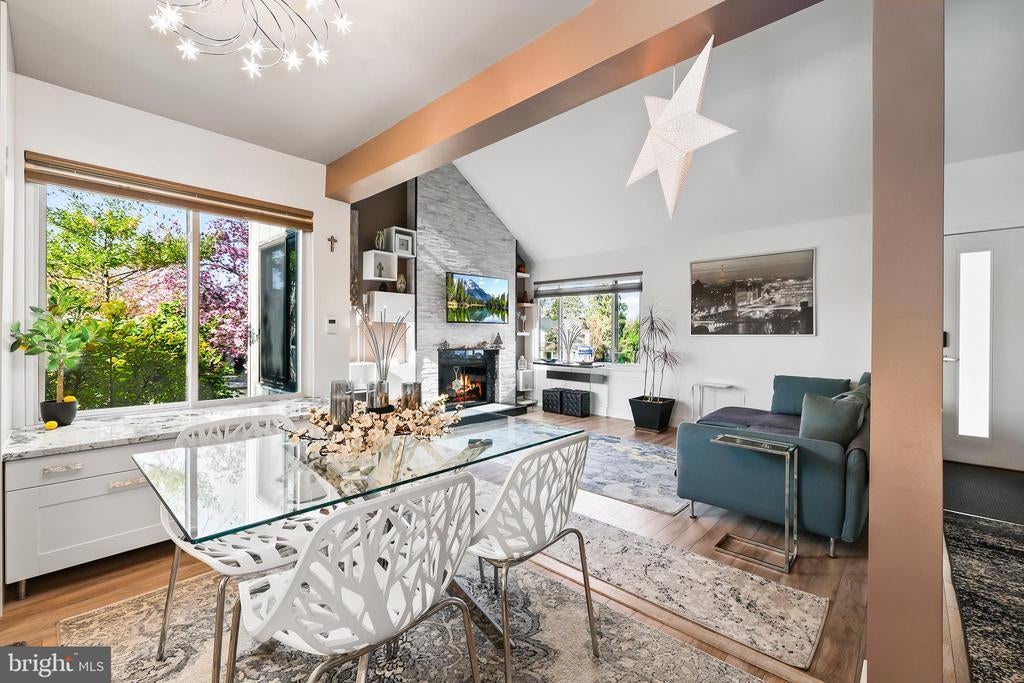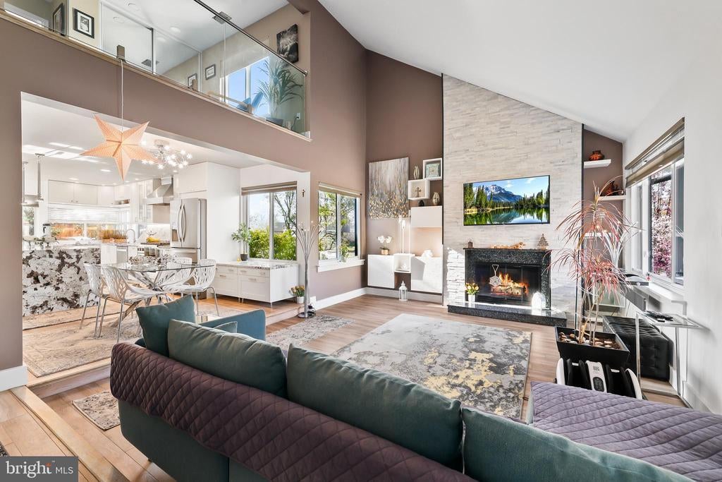 Experience the pinnacle of contemporary living in this meticulously renovated residence. From the moment you step into the sunken formal living room, bathed in natural light from soaring skylights and cathedral ceilings, you'll be captivated. A dramatic picture window frames a serene treetop vista, while an open second-story balcony adds a touch of architectural intrigue. The heart of the home, the gourmet kitchen, is a culinary masterpiece. Its expansive countertops and corner sink, flanked by two oversized picture windows, create an airy and inviting atmosphere. The seamless flow of the first floor, punctuated by two wood-burning fireplaces with custom built-ins and accent lighting, is perfect for both entertaining and everyday living. Ascend to the second level, where a spacious landing, ideal for a home office, awaits. The primary suite is a true retreat, featuring a vaulted ceiling with exposed beam, a private balcony, and a luxurious jetted tub bathroom. Two additional generously sized bedrooms and a shared hallway bath with new vanity and tile floor complete the upper level. Outside, a sizable rear deck with a tranquil Koi pond and waterfall provides a peaceful oasis. A two-car garage on a corner lot, with ample guest parking, adds to the convenience. Located for effortless commuting, with easy access to Washington, D.C., Fairfax County Parkway, I-95, I-495, Ft. Belvoir, and the VRE. No HOA. Brand new roof installed in 2024. 2 level home no basement. This is more than a home; it's a lifestyle. Mortgage savings may be available for buyers of this listing.