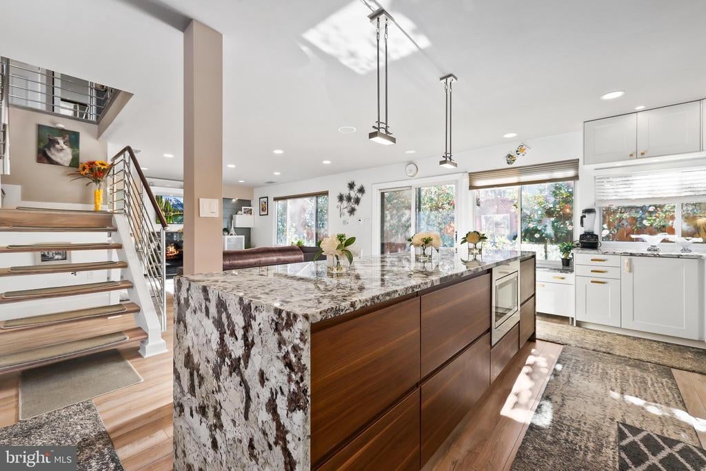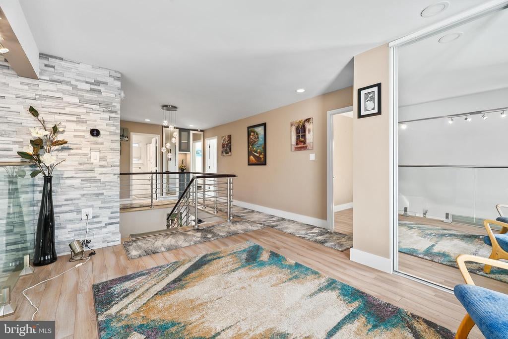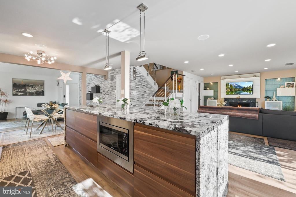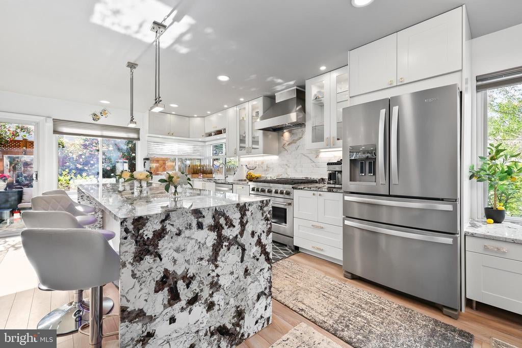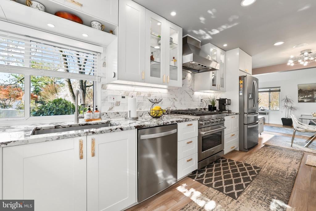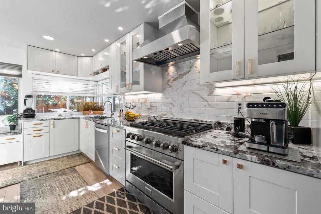 Experience the pinnacle of contemporary living in this meticulously renovated residence. From the moment you step into the sunken formal living room, bathed in natural light from soaring skylights and cathedral ceilings, you'll be captivated. A dramatic picture window frames a serene treetop vista, while an open second-story balcony adds a touch of architectural intrigue. The heart of the home, the gourmet kitchen, is a culinary masterpiece. Its expansive countertops and corner sink, flanked by two oversized picture windows, create an airy and inviting atmosphere. The seamless flow of the first floor, punctuated by two wood-burning fireplaces with custom built-ins and accent lighting, is perfect for both entertaining and everyday living. Ascend to the second level, where a spacious landing, ideal for a home office, awaits. The primary suite is a true retreat, featuring a vaulted ceiling with exposed beam, a private balcony, and a luxurious jetted tub bathroom. Two additional generously sized bedrooms and a shared hallway bath with new vanity and tile floor complete the upper level. Outside, a sizable rear deck with a tranquil Koi pond and waterfall provides a peaceful oasis. A two-car garage on a corner lot, with ample guest parking, adds to the convenience. Located for effortless commuting, with easy access to Washington, D.C., Fairfax County Parkway, I-95, I-495, Ft. Belvoir, and the VRE. No HOA. Brand new roof installed in 2024. 2 level home no basement. This is more than a home; it's a lifestyle. Mortgage savings may be available for buyers of this listing.