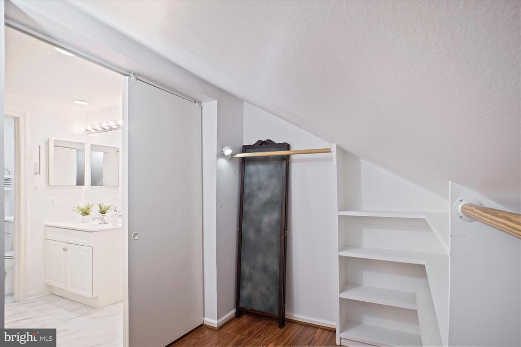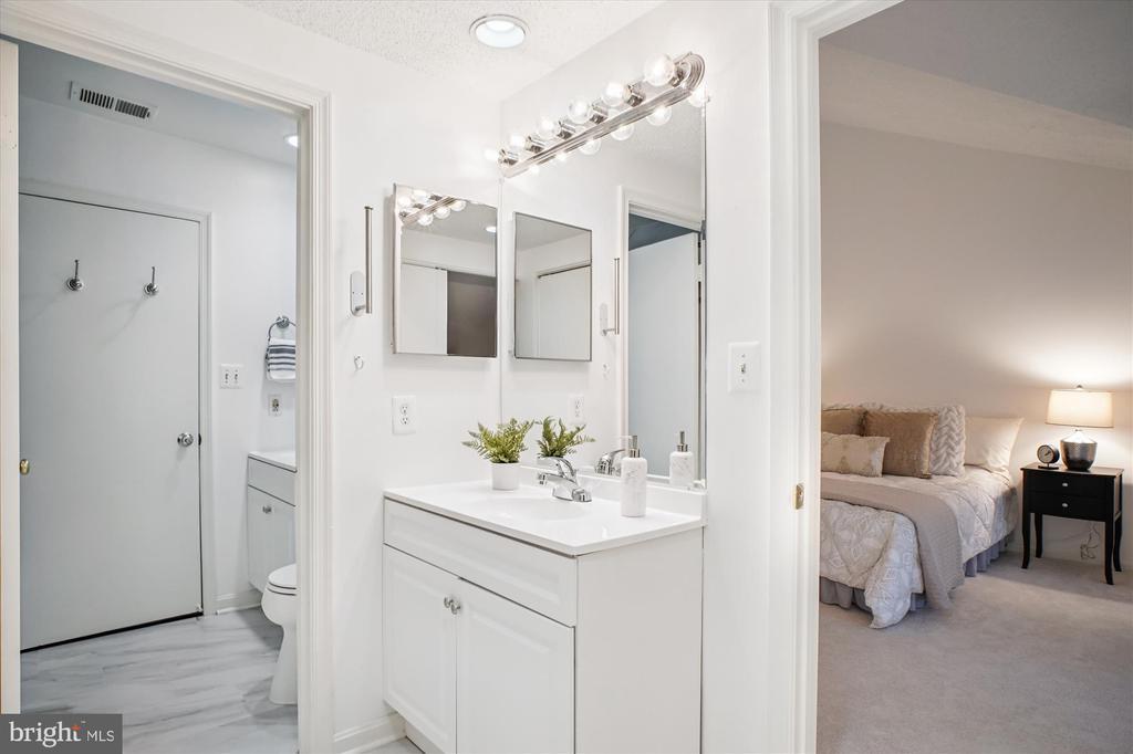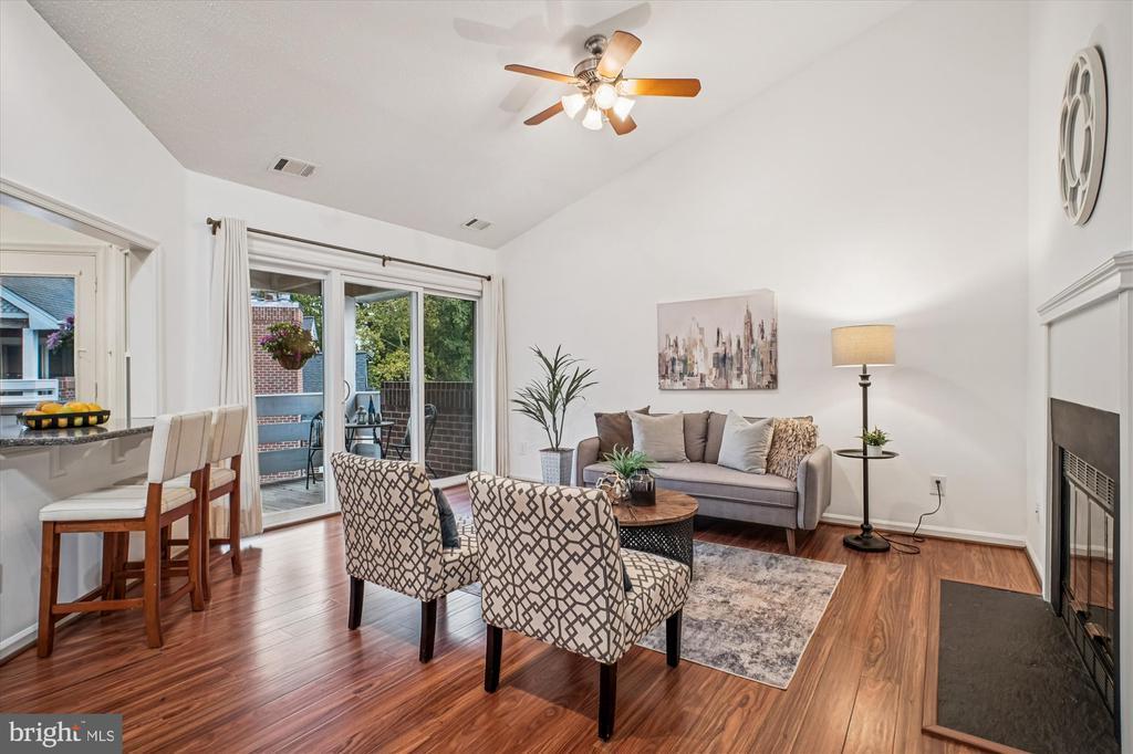Fabulous top level lake community condo with vaulted ceilings, open floor plan, updated kitchen, bath and flooring. This is a must see if you are looking for a quiet condo in a very convenient location inside the beltway. Easy access to Mosaic, Tysons and all things Falls Church. This is the largest 1 bedroom unit in the complex. Parking is easy and open with one permited space and two guest permits. Don't miss seeing this one, it could be yours before the holidays.