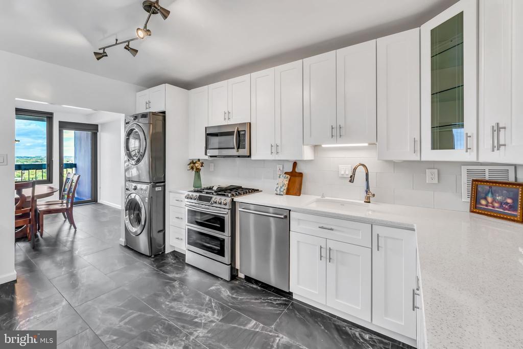 Built-In Microwave, Refrigerator, Stove, Stainless Steel Appliances, Disposal, Dishwasher, Washer/Dryer Stacked