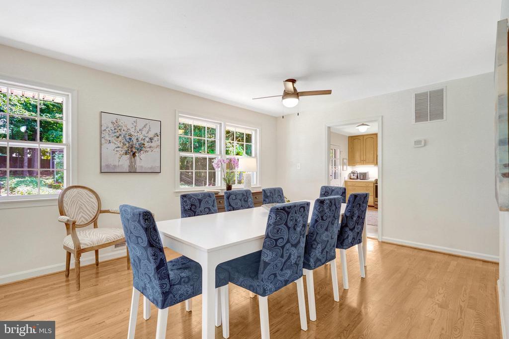 Hurry in to see this stately looking 4 BR/3BA solid brick home on 1/3 acre of land, right in the heart of the popular SLEEPY HOLLOW RUN neighborhood! The neighborhood has been referred to as a "hidden gem inside the beltway" and borders Falls Church and Alexandria. It's about as close in as you can get in Annandale and only minutes from Arlington, Falls Church and Alexandria. Recent renovations and improvements include: BRAND NEW ROOF with architectural shingles in 2024, new gutter in back, 2 full bathrooms completely renovated from top to bottom, bathroom #3 on main level nicely updated and almost all new. Hardwood floors throughout entire house (except bathrooms and bonus room on main level), painted in a neutral color throughout, new storm door in kitchen, updated kitchen with under cabinet lighting, new faucet, new light, water filter. Front door has new hardware and shutters freshly painted. All new mini-blinds in bedrooms and family room. NEW AC 2017, Hot water heater 2021. Existing warranty conveys for most appliances until 1/15/27. This is a wonderful home for entertaining on your 35' patio that overlooks your private backyard. Living room, dining room and kitchen overlook the private and lush patio/yard. Enter and exit via the kitchen door or the French doors in living room. Three nice sized bedrooms and two full bathrooms complete the upper level. The ensuite primary bedroom has a walk in closet. The main level has a cozy family room with wood burning wood stove and brick mantel. The foyer has a huge closet for coats, shoes, boots and other storage. Next to the foyer on other side of family room is a large bedroom/office with walk-in closet and nice sized windows overlooking the front and side yards. The long back room area is currently being used as a home office, but could also be converted into a gym, yoga room, play room, art room and has tons of storage! This neighborhood is so close to everything! Route 495/66, 395, Washington DC, Tysons, Pentagon, National Landing. Right across the street from the largest park in Fairfax county (127 acre Mason District Park) with hiking trails, a dog park, weekly farmers market from May to November, free summer concerts, soccer and baseball fields, basketball and tennis courts. Join the Forest Hollow Swim Club at the end of the street, have some fun in the summertime and meet all your neighbors! Also within walking distance to Pinecrest Golf Course and Green Spring Gardens. Very close to Thomas Jefferson HS. Walk to Starbucks, Lidl, Taco Rock, Indian restaurant, Five guys. Hurry, this beauty will go quickly!