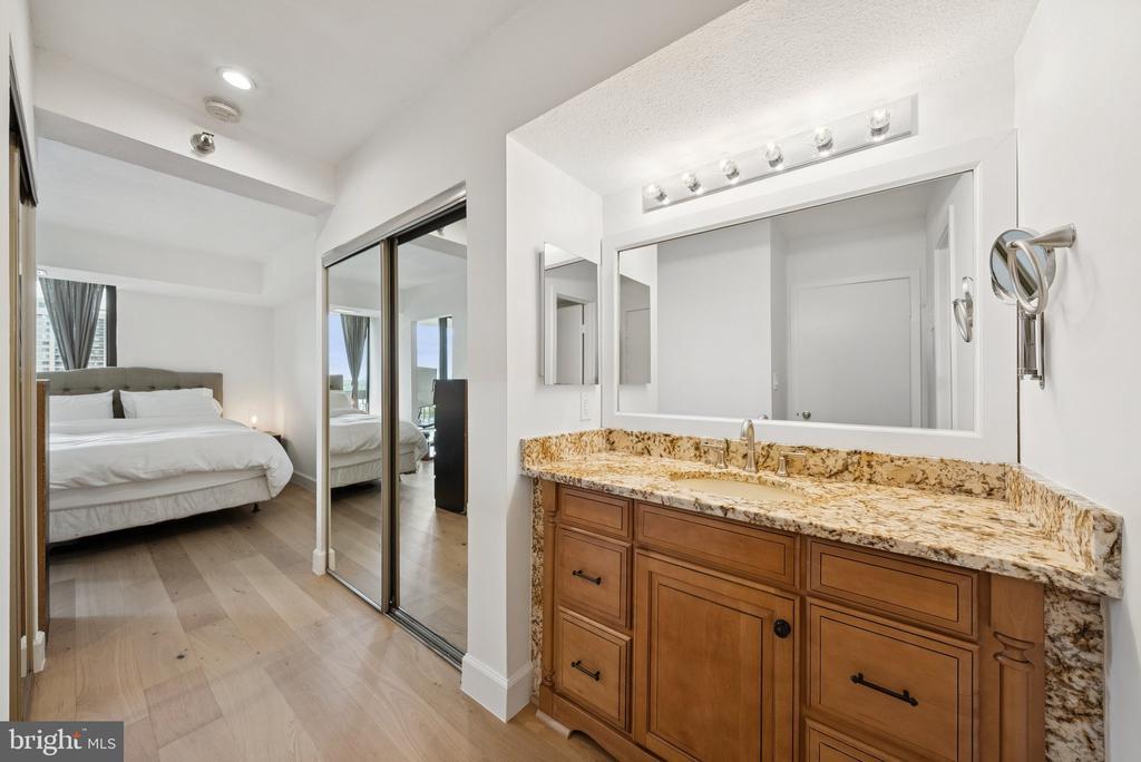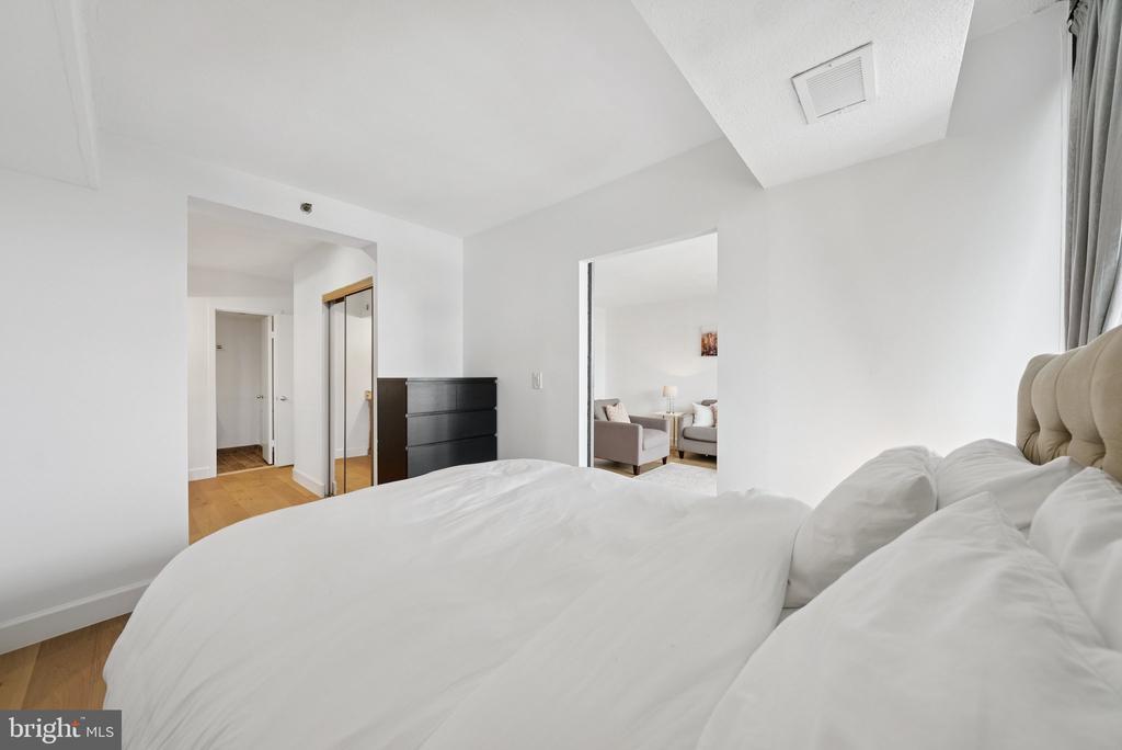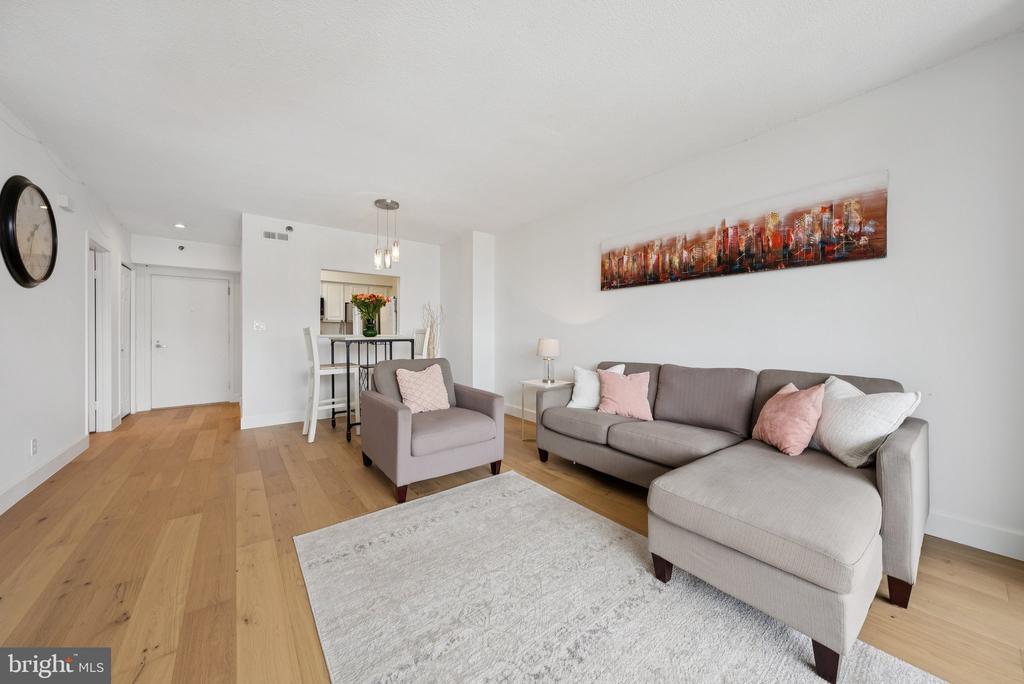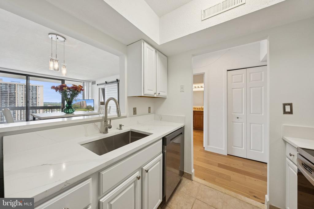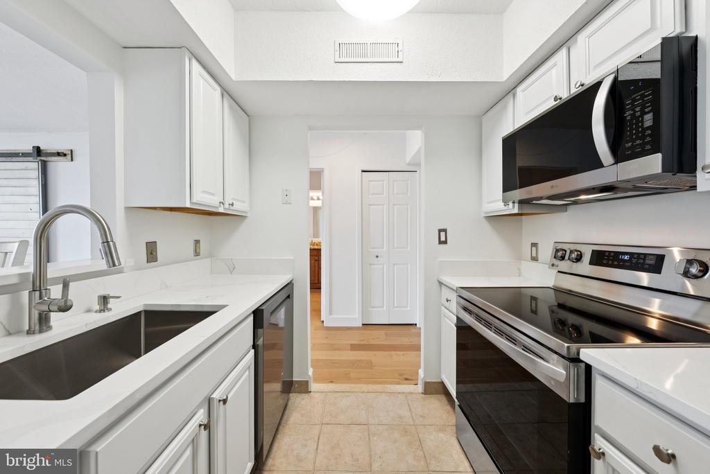 Experience modern living at its finest in this beautifully remodeled 16th-floor high-rise unit featuring breathtaking sunset views. This light-filled home showcases brand-new appliances, quartz countertops, new LVP flooring, and fresh paint throughout. Floor-to-ceiling windows flood the space with natural light, while a stylish barn door adds a touch of charm and maximizes usable space. Enjoy the convenience of an assigned garage parking space and additional storage unit, along with an array of community amenities including a pool, fitness center, study/lounge area, and ample guest parking. Ideally located just 15 minutes from Washington, D.C. and with easy access to major highways, this residence perfectly combines comfort, style, and convenience.