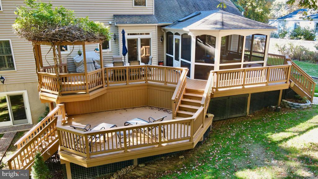 Welcome to 11620 Leehigh Drive, a beautifully updated 5-bedroom, 4.5-bath home set on a private, landscaped lot in a quiet, walkable neighborhood within the sought-after Woodson School District. Offering approximately 5,000 square feet of living space, this residence blends classic design with thoughtful, high-quality updates for refined living in one of Fairfax’s most desirable communities. Surrounded by mature trees and lush greenery, the home provides both privacy and a true sense of community. The main level features a bright, open layout ideal for everyday living and entertaining. The remodeled kitchen showcases high-end Thermador appliances, including a 6-burner gas range, split refrigerator and freezer, dual dishwashers, and a large center island framed by custom cabinetry and ceramic stone tile flooring. The adjoining family room offers a custom stone fireplace and elegant finishes, while the main-level laundry room also features coordinating ceramic stone tile. Upstairs, the primary suite has been fully remodeled and offers a relaxing retreat with modern finishes, generous closet space, and a luxurious en suite bath featuring heated flooring, an oversized walk-in shower with dual shower heads, a Toto toilet-bidet, and beautifully updated fixtures. A secondary bedroom also enjoys its own private full bath, while the other two bedrooms share a well-appointed hall bath. Each space feels fresh and inviting, creating a comfortable and functional layout for family and guests alike. The finished walkout lower level adds incredible versatility and nearly 1,400 additional square feet of living space. A spacious recreation room offers plenty of room for movie nights, a game area, or casual gatherings, while the porcelain tile flooring and recessed lighting keep the space bright and comfortable. A private guest suite with a full bath provides ideal accommodations for overnight guests or extended stays, and walkout access to the backyard makes it easy to enjoy the outdoors year-round. Outdoor living shines with a screened-in porch and two spacious decks overlooking the tree-lined backyard—perfect for relaxing or entertaining in total privacy. Throughout the home, every detail reflects quality craftsmanship and care. All bathrooms have been beautifully renovated, the primary bedroom refreshed for a clean, contemporary look, and a walk-in pantry added just off the kitchen. Beyond its many updates, the pool table and office furniture will convey, adding those extra touches that make this home feel instantly welcoming. Residents enjoy exceptional walkability—just a short stroll to the Fairfax County Government Center, as well as the shops, dining, and entertainment at Fairfax Corner. Convenient access to Route 236, I-495, and the Vienna Metro provides easy travel to Tysons, Arlington, and Washington, D.C. With its thoughtful upgrades, elegant finishes, and prime location within the Woodson School District, 11620 Leehigh Drive offers the perfect blend of sophistication, comfort, and convenience in the heart of Fairfax.