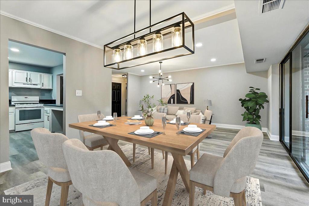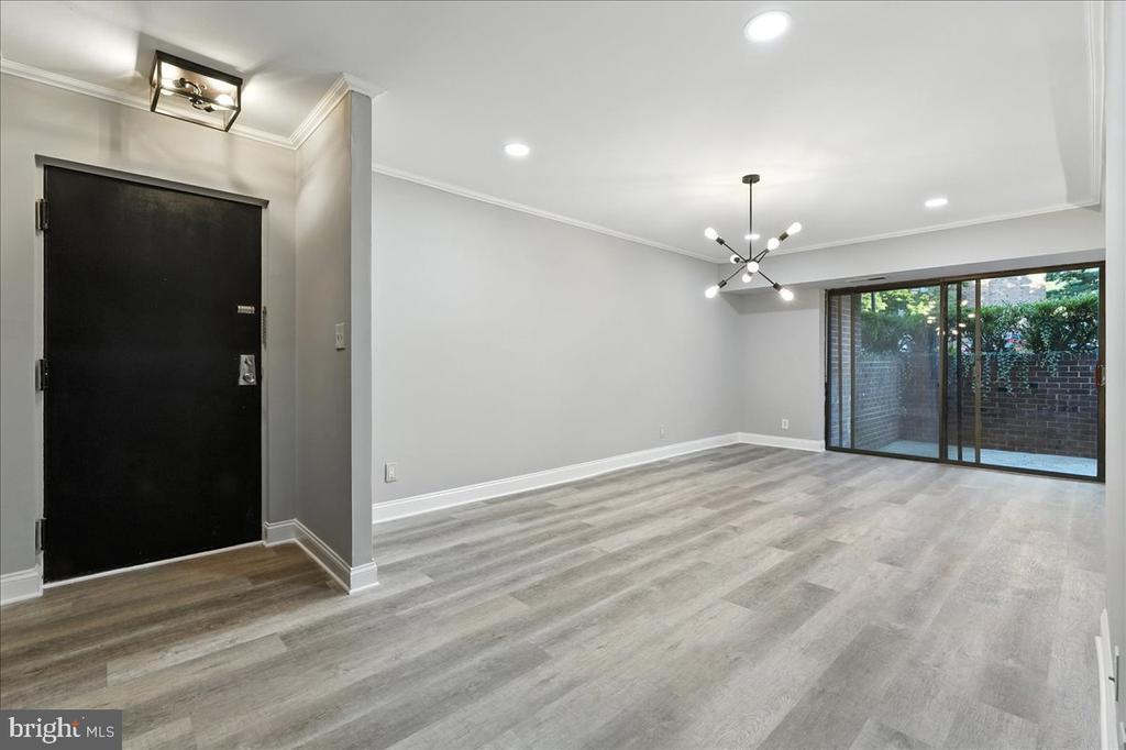 Crown Molding, Shades/Blinds, Entry Lvl BR, Wood Floors