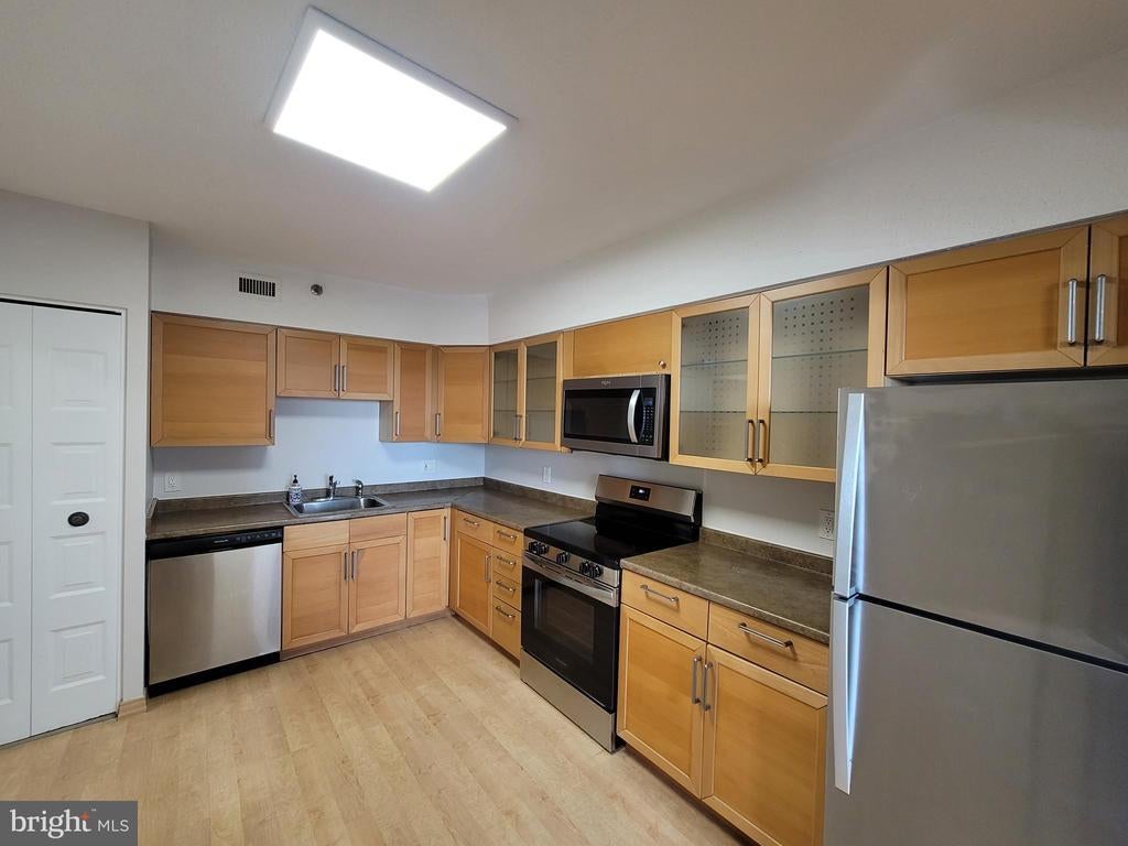 Welcome to 1107 South. Upscale living in one of Northern Virginia’s premier luxury high rises. Spacious 2 BR/2 BA condo with sun-filled southern exposure; expansive, unobstructed views; and a large balcony. Solid hardwood floors, walk-in closets, and stainless-steel appliances. Recent upgrades include high-end, five-foot vanities with Carrara marble and Quartz stone countertops, new paint throughout, and new Frigidaire range. Skyline Square provides 24-hour concierge, pool, gym/fitness center, sauna, rooftop deck, recreation areas and more. Garage parking and storage unit included. Amazing location close to shops, restaurants, the Mark Center, 395… basically everything.
