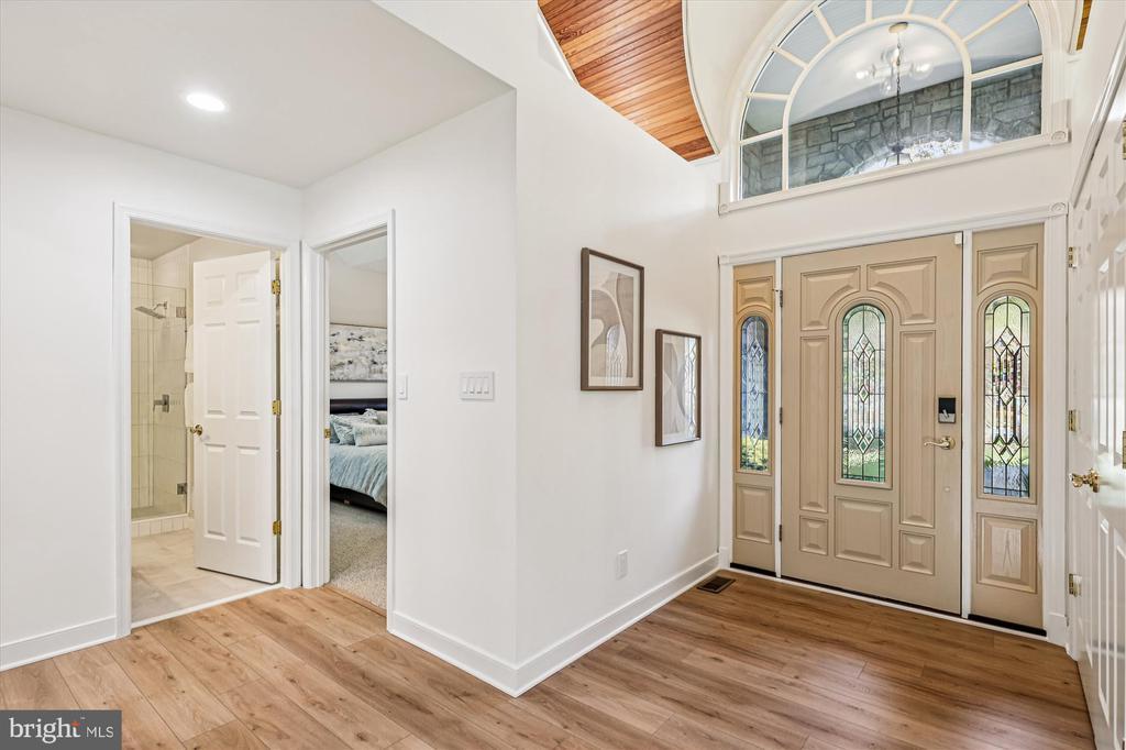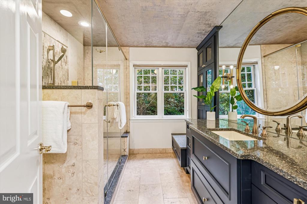 This spectacular custom home is truly Architectural Digest worthy, providing a perfect blend of sophistication, comfort, and architectural artistry. Once the personal residence of a renowned Vienna architect, it was crafted with exceptional quality and thoughtful design throughout. From the graceful stone-arched entry to the vaulted wood ceilings and walls of windows, every element reflects craftsmanship rarely found today. Offering over 5,000 square feet of inspired living space, this 4-bedroom, 4.5-bath home is beautifully sited on a .37-acre landscaped lot backing to trees, creating a peaceful, private oasis alive with birds, wildlife, and seasonal color. The design provides main-level living at its best, featuring a luxurious primary suite with spa-inspired bath and three additional spacious bedrooms—two with ensuite baths—and options for a fifth bedroom. The gourmet kitchen will delight the most discerning cook, with stainless appliances, quartz countertops, 42-inch wood cabinetry, walk-in pantry, and an adjacent four-season sunroom that opens to the deck and patio for effortless indoor-outdoor entertaining. The family and dining rooms showcase vaulted wood ceilings, skylights, and panoramic windows, filling the home with natural light, warmth and pretty views. A main-level office with private exterior entrance offers flexibility for remote work, while the upper-level loft provides additional space for a second office, gym, or teen retreat. The walk-out lower level features a spacious recreation room, guest suite with adjacent renovated bath, sitting area, and abundant storage. Professionally landscaped grounds complete this tranquil retreat, offering rare privacy just steps from Vienna’s vibrant downtown. Located within the sought-after Madison High School pyramid and near top private schools including Flint Hill, this home offers exceptional educational options. Enjoy an easy walk to the Vienna/Fairfax Metro, and minutes to Church Street shops, restaurants, and the W&OD Trail. Embrace Vienna’s lively small-town charm at events like ViVa Vienna, Chillin’ on Church, Oktoberfest, the Halloween Parade, and Taste of Vienna, or enjoy performances nearby at Wolf Trap National Park for the Performing Arts. With quick access to Tysons, D.C., and the Pentagon, commuting is effortless via Routes 66, 495, 123, and 50. Recent updates include a 30-year architectural roof and HVAC (2024), powder room addition (2023), kitchen appliances (2020), washer/dryer (2019), and water heater (2016). Freshly painted and truly move-in ready, this one-of-a-kind Vienna residence is a 10+++!