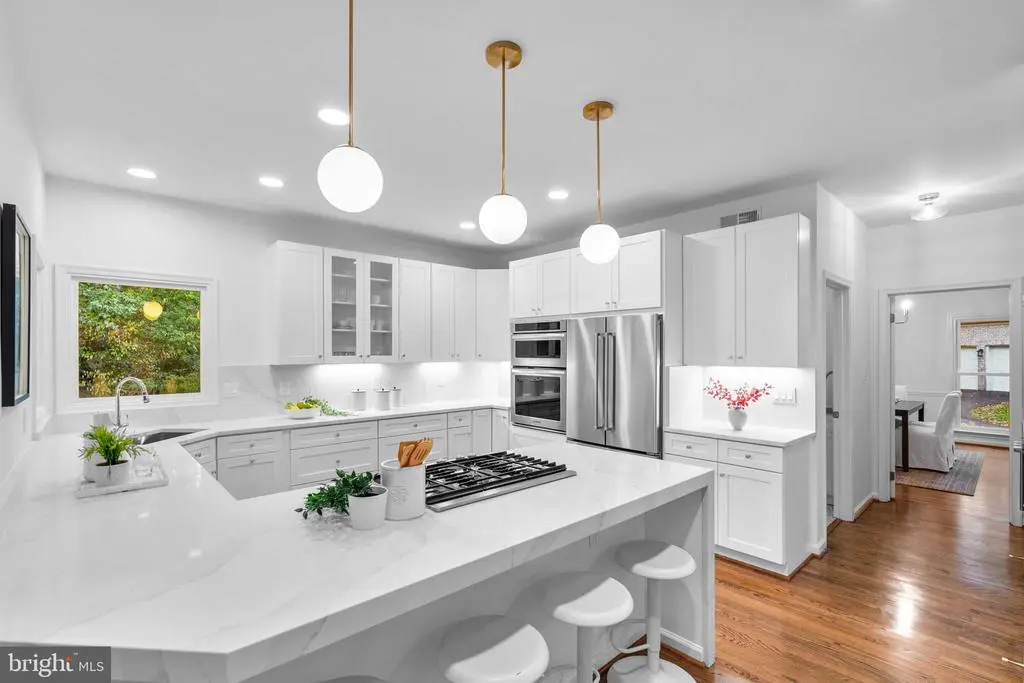 Welcome to 13019 Bankfoot Court, a beautifully renovated home in the desirable Ashburton Oaks community in the heart of Herndon. Offering over 5,000 square feet, this move-in-ready residence combines classic architecture with modern comfort. Upon entry, the inviting foyer, featuring a curved staircase, is flanked by the formal living and dining rooms - perfect for both gatherings and refined entertaining. The family room, anchored by a wood-burning fireplace, opens directly to a spacious elevated deck that overlooks the backyard, creating a seamless indoor-outdoor flow. The gourmet kitchen features quartz countertops and backsplash, an expansive peninsula, soft-close cabinetry, a large pantry closet and high-end KitchenAid and Bosch appliances. A casual dining area connects the kitchen and family room, offering a comfortable everyday space. An executive home office and a well-appointed powder room complete the main level. Upstairs, the landing offers a light-filled flex area ideal for reading or relaxation. The primary suite provides a private retreat with cathedral ceilings, dual walk-in closets, and a luxurious bath with a freestanding soaking tub, separate shower, and private water closet. A second ensuite bedroom with its dedicated bathroom, two additional bedrooms and a shared hall bath with double vanity complete the upper level. The lower level includes a large recreation room with walk-out access, a fifth bedroom, a full bathroom, and generous unfinished space that can be customized to fit future needs. Conveniently located near major highways and public transit, this home offers easy access to Washington, D.C. and the surrounding areas. Owner is a licensed Realtor.