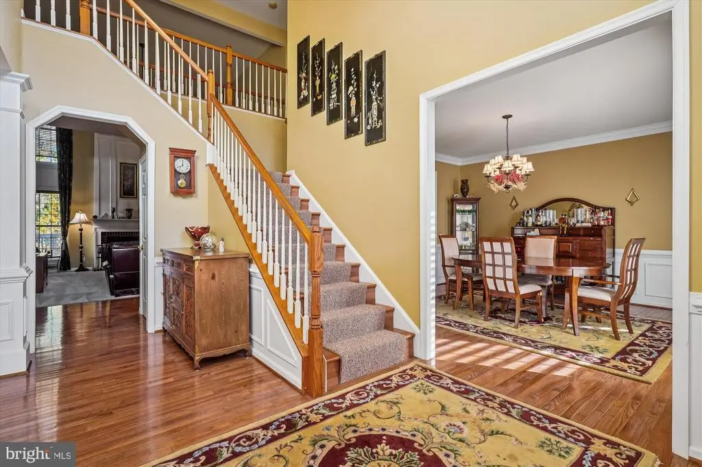Upgraded Countertops, Attic, Bar, Built-Ins, Butlers Pantry, Carpet, Ceiling Fan(s), Chair Railings, Crown Moldings, Double/Dual Staircase, Formal/Separate Dining Room, Primary Bath(s), Recessed Lighting, Walk-in Closet(s), Wet/Dry Bar, Window Treatments, Wood Floors