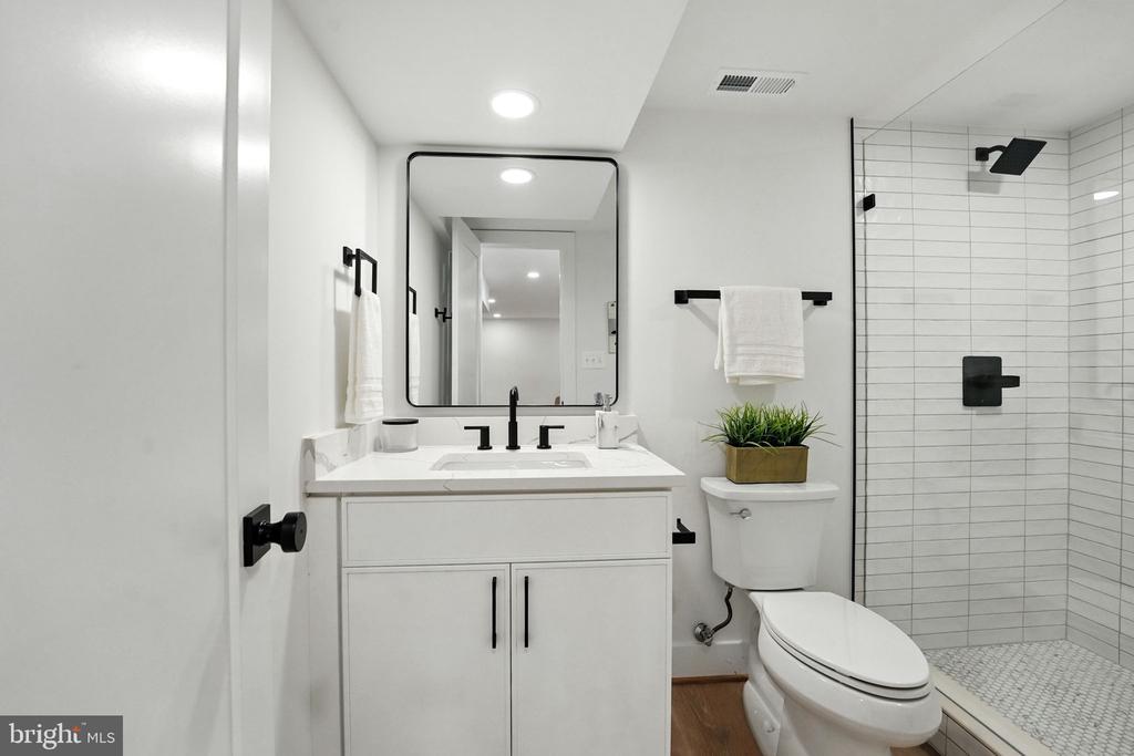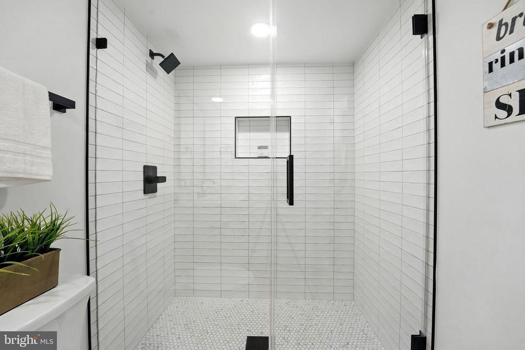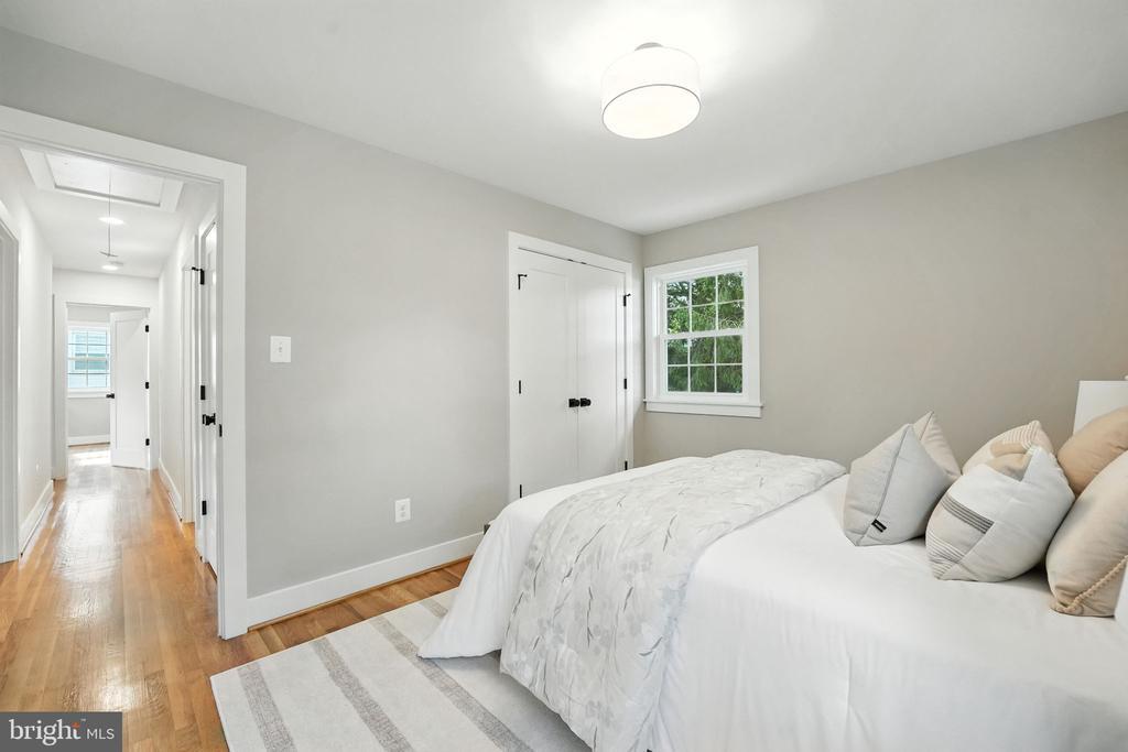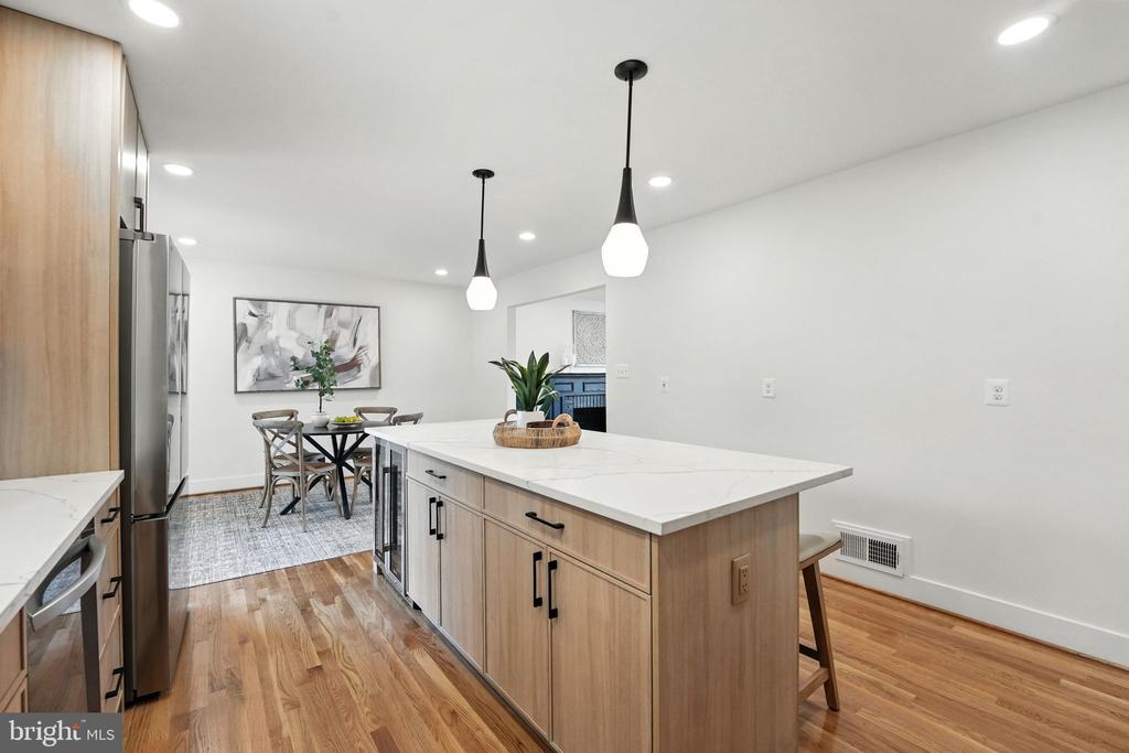 Experience refined living in this exquisite three-level center hall colonial, beautifully situated on a flat, .39-acre lot. Offering 3,360 square feet of thoughtfully designed interiors, this residence features four spacious bedrooms upstairs, a versatile fifth bedroom or den on the lower level, and 3.5 contemporary bathrooms. A sun-filled foyer welcomes you, leading to an open layout that seamlessly connects each living space. The chef’s kitchen is a culinary masterpiece, showcasing a large center island with Calcutta Laza Quartz countertops, a beverage center, and elegant wood-finished slim shaker cabinetry. Natural hardwood floors flow throughout the main and upper levels, enhancing the home’s warmth and sophistication. The inviting eat-in kitchen area opens to a new oversized TimberTech deck with impression rails, as well as a new patio—perfect for entertaining in the private, tree-lined backyard. Relax in the spacious living room, featuring a charming wood-burning fireplace adorned with modern metropolis tile. The main level also offers a generous laundry room, mudroom with ample storage, and a convenient powder room. Upstairs, the expansive primary suite includes a custom walk-in closet with a closet island and a luxurious spa-inspired bath, complete with a skylight, dual rain shower heads, and dual vanity. Three additional bedrooms provide ample space and comfort, complemented by designer light fixtures and an updated hall bath featuring a dual vanity and linen closet. The walk-out lower level is ideal for entertaining, offering a large recreation room with a wet bar and beverage center, a full bath, and a flexible den/bedroom that can serve as a gym, playroom, craft room, or office. Recent upgrades such as an architectural shingle roof, new double-pane vinyl windows, and a new concrete driveway ensure lasting quality and energy efficiency. Enjoy a vibrant community with nearby parks and lighted sidewalks for evening strolls. Conveniently located with easy access to the Westwood Country Club, shops, restaurants, Tysons Corner, Vienna Town Center, major commuter routes, and Metro. This home is also just a few steps away from Westbriar Elementary and a short drive to Kilmer Middle and Marshall High. Come check out the home for yourself, you won’t want to leave!