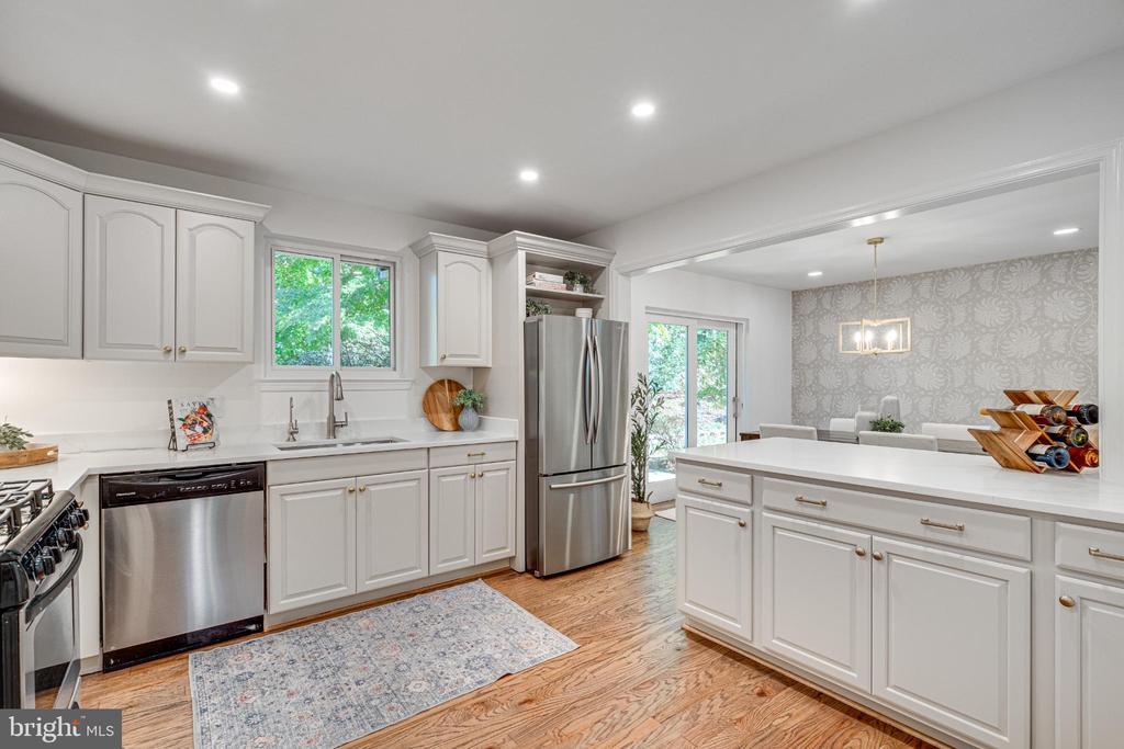 Welcome to 9896 Becket Court, a Regent model in Kings Park West. This 4 bedroom, 3 full bath home has been lovingly improved for sale and it is so very nice! As you approach this home, you are likely to be greeted by dappled sunlight from the large, front-yard tree. You'll love the replaced front door and you'll love even more the freshly refinished hardwood floors that run through the entire main level of the house as well as upstairs through the bedrooms (refinished 2025 with our favorite custom stain!). The focal point of the living room is the stunning gas fireplace with beautiful tile surround. Wallpaper in the dining room and new lighting bring this dining room to life while the open kitchen with new quartz counters (2025) will make cooking and sharing meals a delight! Upstairs, you'll find three super cute bedrooms and two completely renovated full bathrooms--both remodeled in 2025. Head back down to the lower level where you'll find our favorite luxury vinyl plank flooring (2025)--this durable flooring connects beautifully with the refinished floors from the upper two levels and we just love it! This level includes the fourth bedroom, a cozy family room with access to the back yard, and the third full bathroom--an exceptional floorplan for guests and family. But wait! There's one more level in this roomy home! The fourth level is such a gem. The LVP continues on the entire level through the recreation room, office, and the super cute laundry room. Kings Park West is such a special neighborhood. There's a large lake with a 2 mile nature trail, several parks and playgrounds, tennis and sports courts, a soccer field and a KPW soccer league for the littles (seriously, so cute), 3 community pools with NO WAITING LIST, quick access to Metro bus and the VRE, and just a short distance from University Mall Theatre which has the best popcorn in Fairfax County.