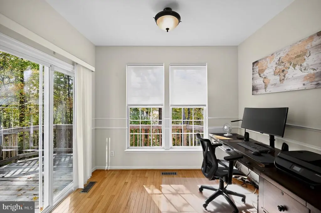 Discover a townhome designed with volume, light, and functionality in mind. This 3-bedroom, 2 full-bath, 2 half-bath home offers a spacious open-concept layout across three levels with nine-foot ceilings, a 2-story foyer, and abundant windows that fill the home with natural light from morning to evening. The main level is anchored by a chef-inspired kitchen featuring stainless steel appliances—including a newer dishwasher—granite countertops, a central island, an undermount sink, and an expansive walk-in pantry. The adjoining dining and sitting areas open to a deck with serene wooded views, perfect for relaxing or entertaining. Elegant hardwood floors in the living room and on all stairs add warmth and continuity throughout. Upstairs, the primary suite impresses with scale and storage, including two lighted walk-in closets and a private bath retreat complete with dual vanities, a glass-enclosed shower, and a soaking tub framed by large windows overlooking the lush green backdrop. Additional highlights include a brand-new washer and dryer, window treatments just three years old, and a roof replaced three years ago for added peace of mind. The lower level offers flexibility with two finished zones, a gas fireplace, and direct access to a fenced outdoor area—ideal for hosting or relaxing. A one-car garage adds convenience without compromising interior comfort. Located in the sought-after Newington Heights area of Lorton, this home is minutes from Silverbrook Elementary, Newington Heights Park, recreational courts, and major routes like Silverbrook Rd and I-95 for seamless commuting. Now’s the time to secure a home that offers both practicality and peaceful surroundings.