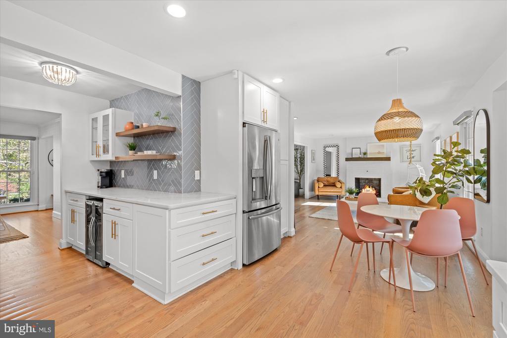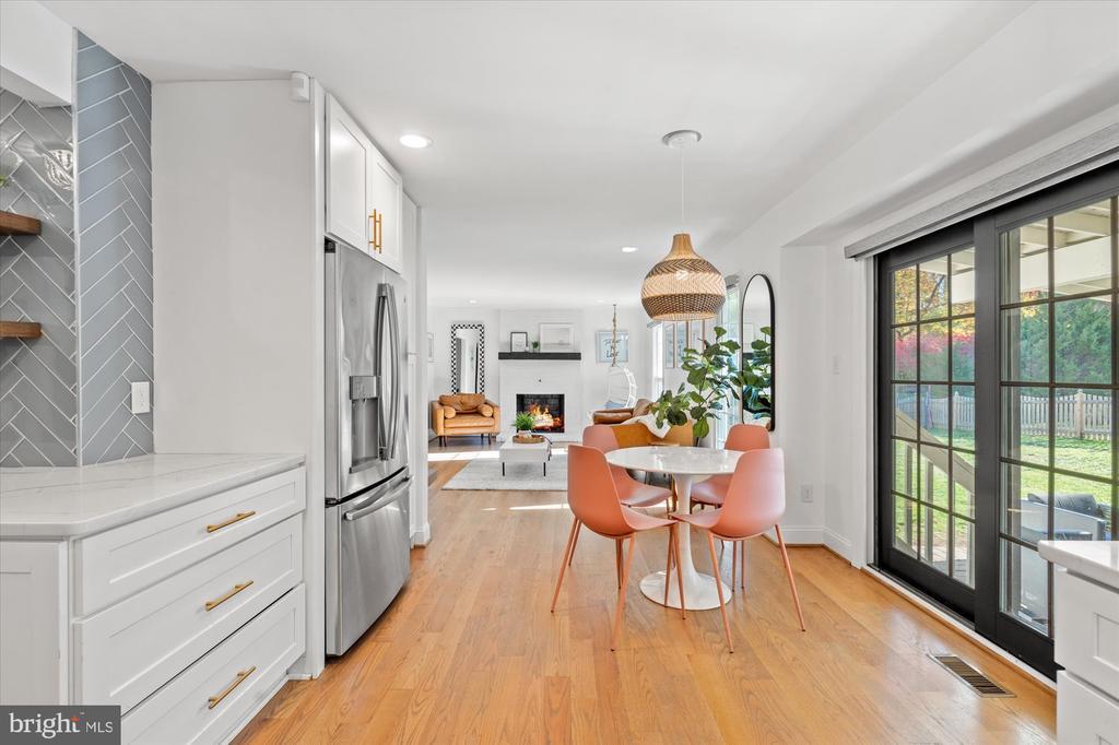 Welcome to 934 Harriman, the home everyone has admired in Hickory Creek for the past six years — celebrated for its thoughtful updates (from 2019 to present) and brimming with personality. Located in one of Great Falls’ most desirable neighborhoods, Hickory Creek offers a true community setting and feeds into highly regarded Langley HS pyramid. At an approachable price point for Great Falls, this fully renovated center-hall colonial delivers both style and function. Main Level: A gracious foyer with a curved staircase opens to light oak wood floors and a flowing, sunlit layout. The living room is enhanced by a striking brick accent wall, while thoughtful touches such as built-in organizational nooks and shiplap like details bring character throughout. The kitchen features quartz countertops, white shaker cabinetry with gold accents, farmhouse sink, wine bar, and butler’s pantry — all connecting to the dining room with its stylish chandelier. The family room, anchored by a brick-front wood-burning fireplace, is the perfect place to gather. For added convenience, a well-placed powder room completes the main level. From the kitchen, a French sliding door opens directly to the home’s incredible outdoor living area. Upper Level: The primary suite includes two walk-in closets and a private sitting area — ideal as a reading nook, office, or retreat. A barn door leads to the renovated bath with dual sinks and a custom-tiled shower. Three additional bedrooms and a fully updated hall bath complete this level. Lower Level: The finished lower level offers new luxury vinyl plank flooring, a large recreation area, flex/bonus room, and a full bath. With walk-up access to the backyard, it’s perfectly suited for play, workouts, hobbies, or guest space. Outdoor Living: The backyard has been completely reimagined for year-round entertaining. A trellis-covered patio with electric heaters, al fresco string lights, and a mounted flat-screen TV creates a true four-season outdoor room. A premium Gorilla playset and a new wood plank fence enclosing the entire backyard make the space equally functional and inviting. From al fresco dining to cozy fall evenings by a fire pit, this outdoor retreat is designed for every occasion. 934 Harriman isn’t just another colonial — it’s a home full of charm, modern updates, and standout outdoor living in one of Great Falls’ most desirable neighborhoods.